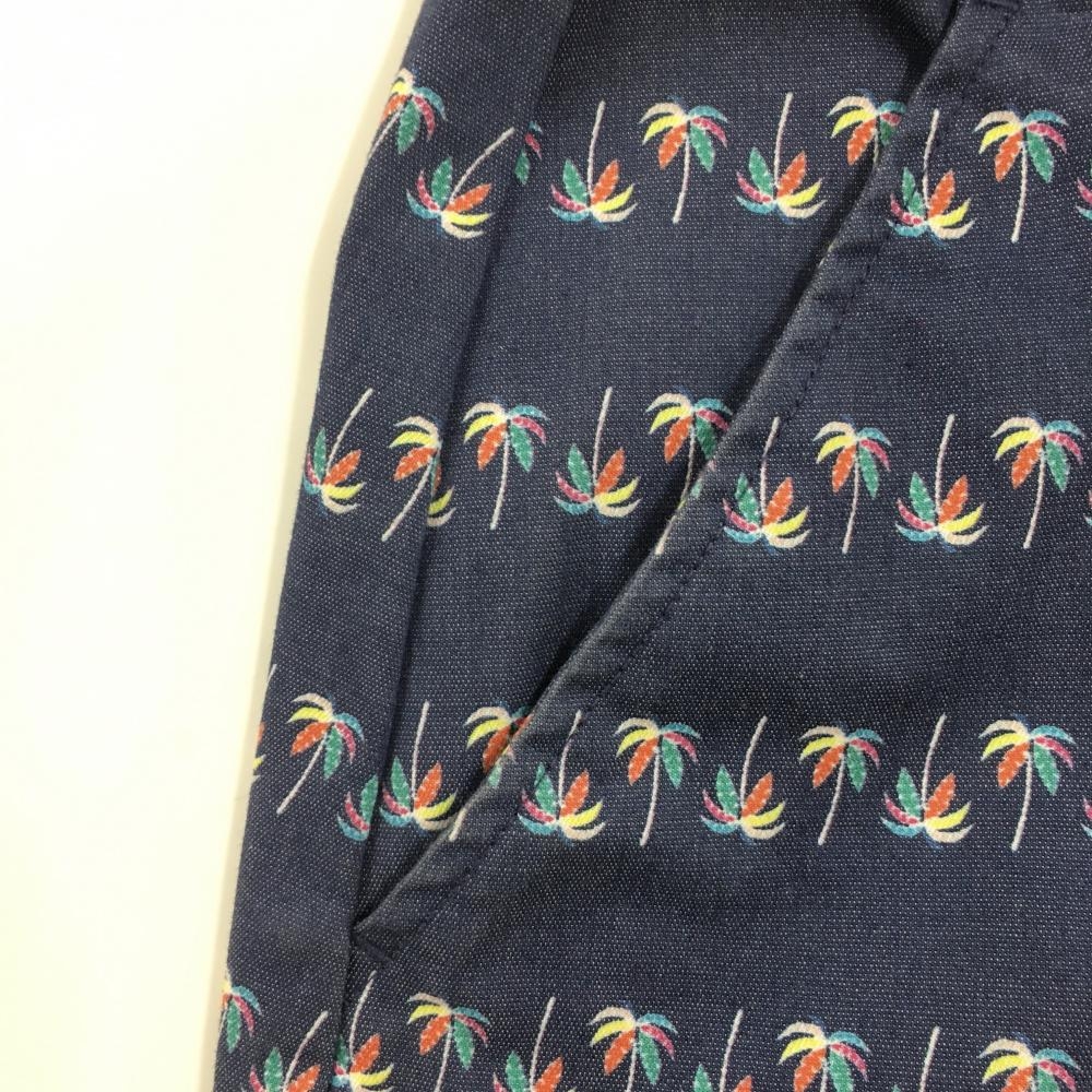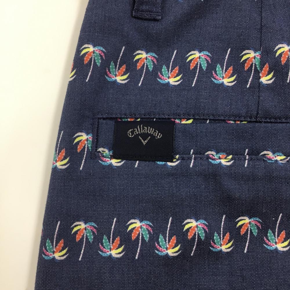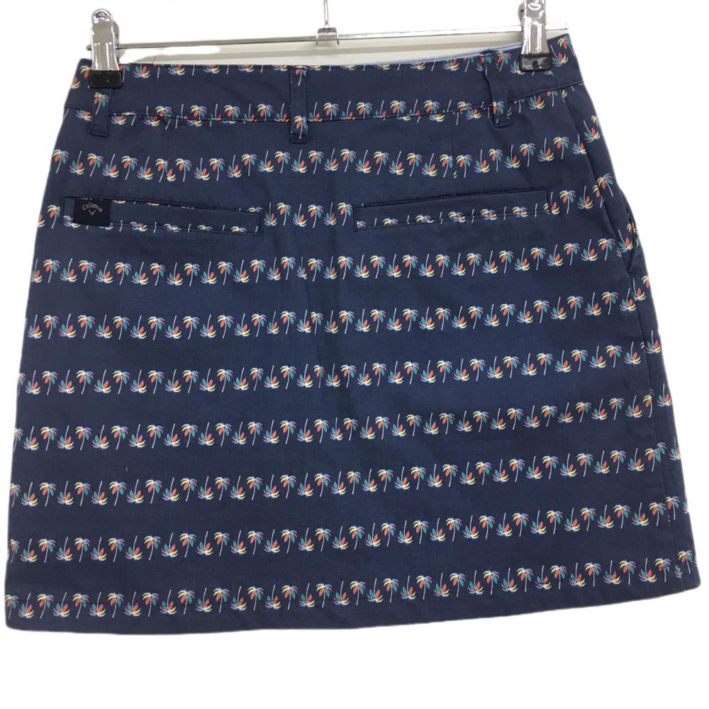 【超美品】キャロウェイ スカート ネイビー×マルチカラー ヤシの木柄 コットン混 レディース M ゴルフウェア Callaway