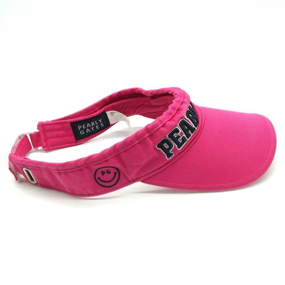 パーリーゲイツ サンバイザー ピンク×ダークネイビー ニコちゃん スマイル コットン100% ゴルフウェア PEARLY GATES