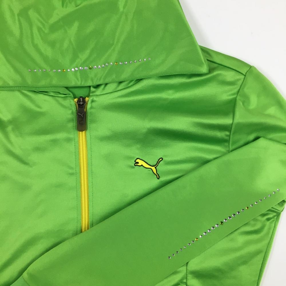 【美品】プーマ ジップパーカー ライトグリーン×イエロー スパンコール レディース M ゴルフウェア PUMA