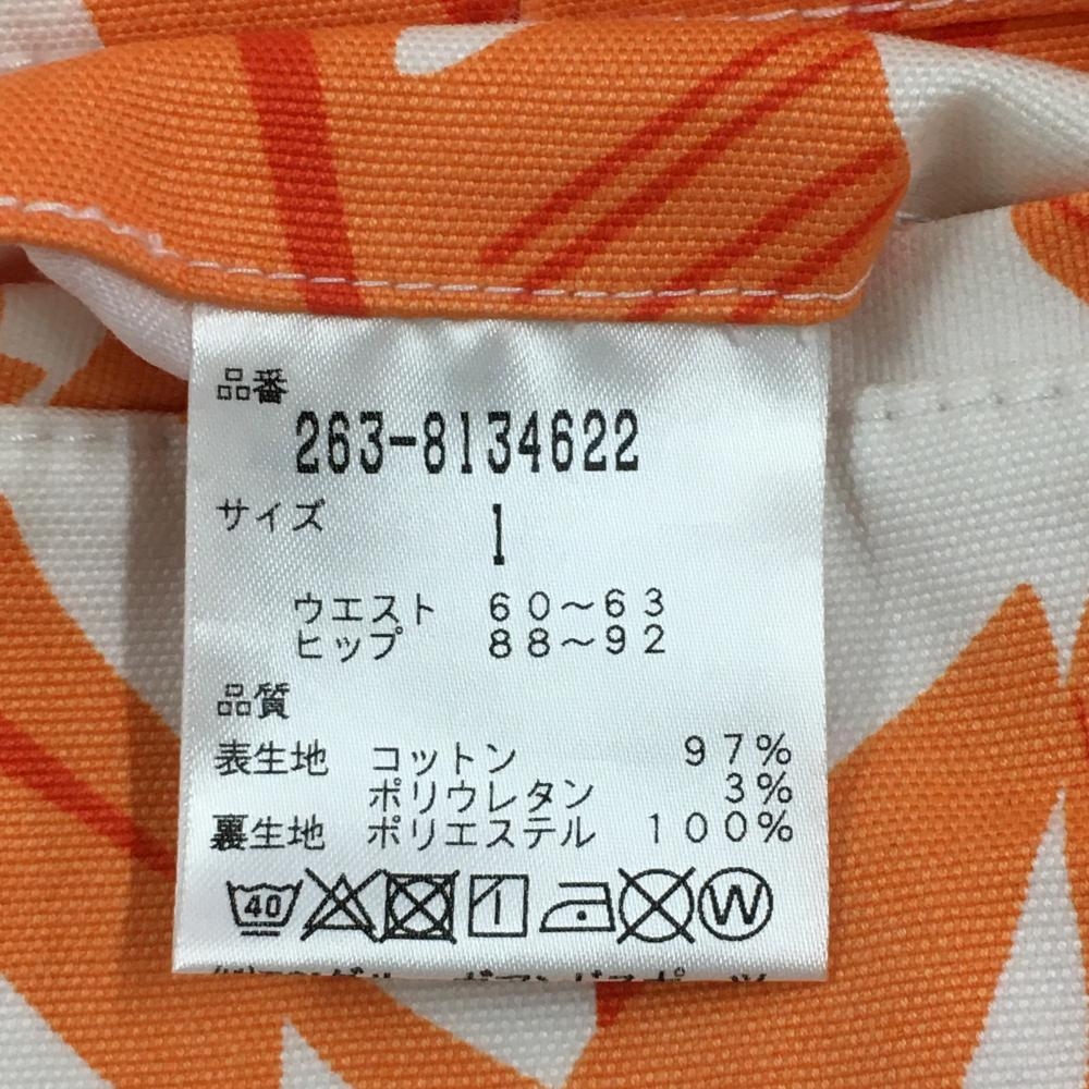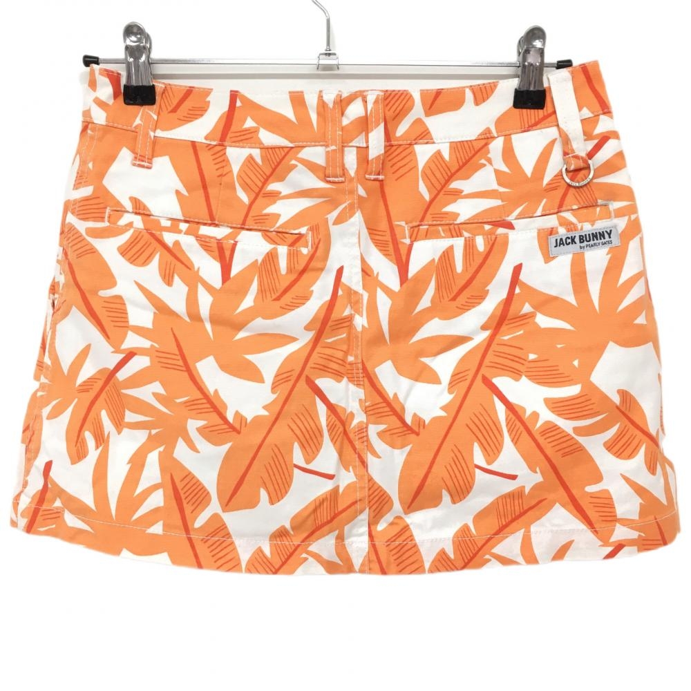 【美品】ジャックバニー スカート 白×オレンジ リーフ柄 総柄 内側インナーパンツ レディース 1(M) ゴルフウェア Jack Bunny