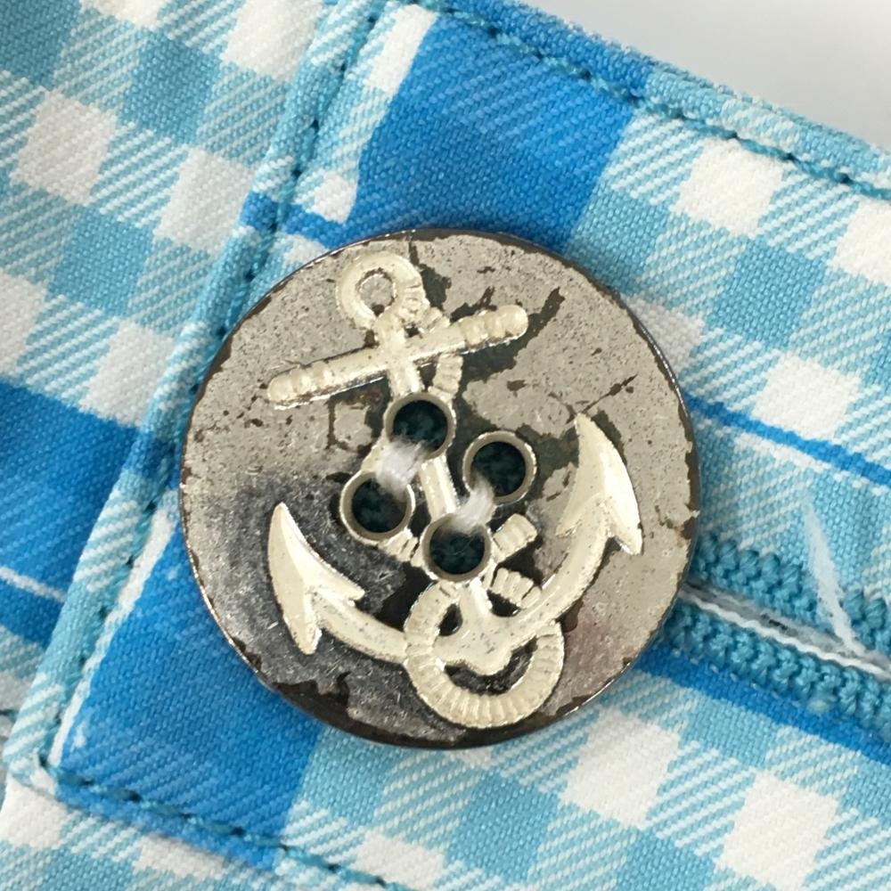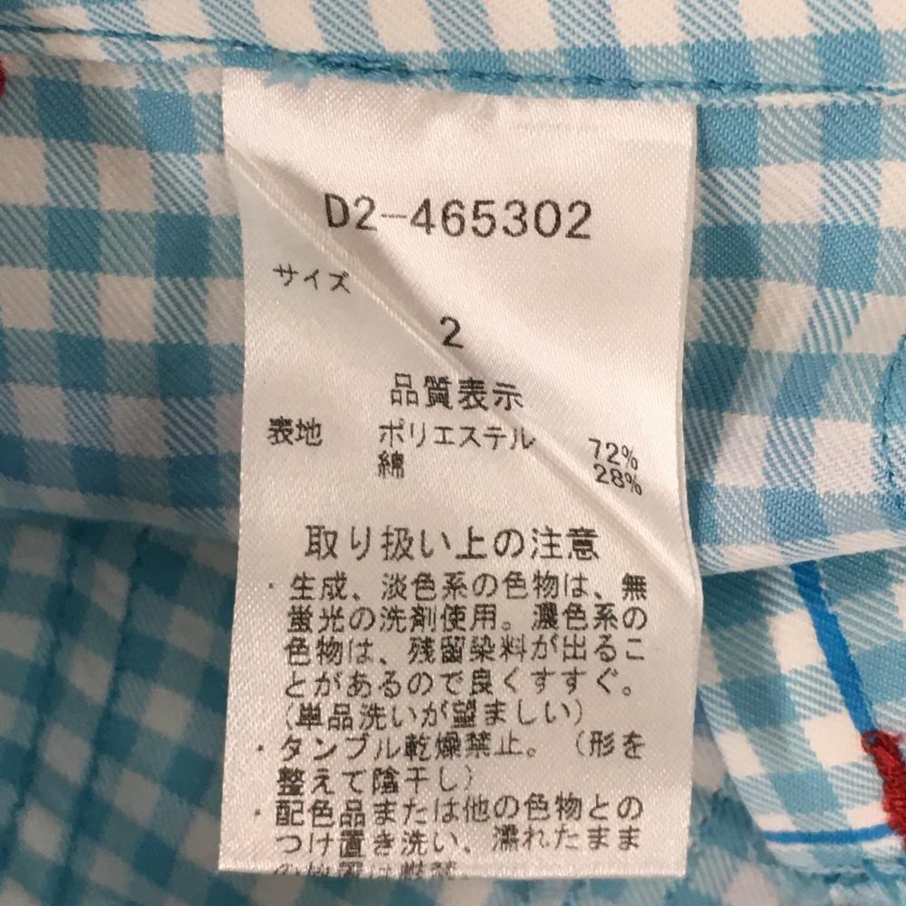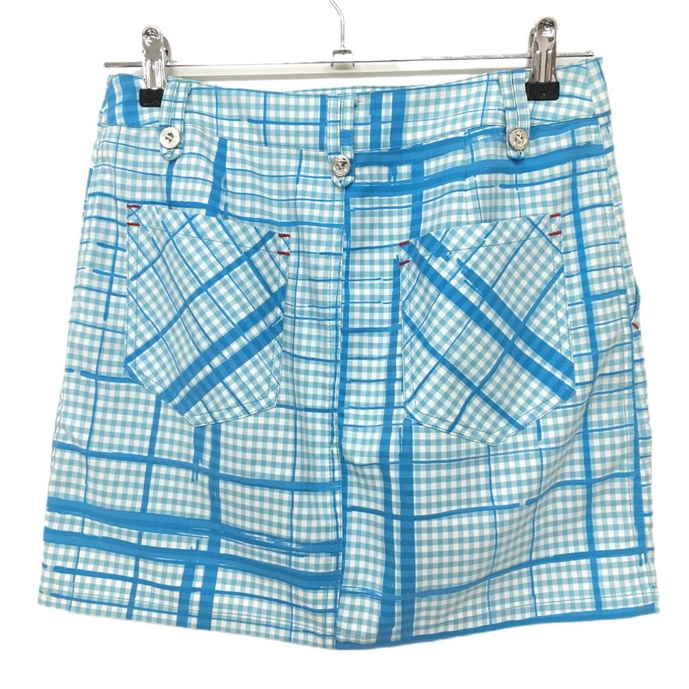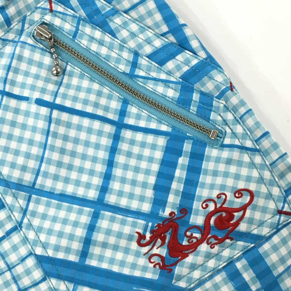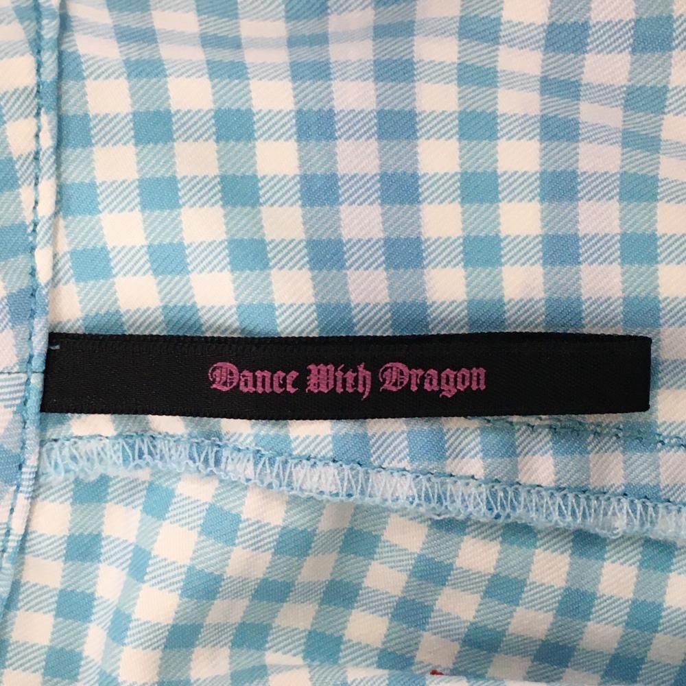 【美品】ダンスウィズドラゴン スカートライトブルー×白 ギンガムチェック レディース 2(M) ゴルフウェア Dance With Dragon