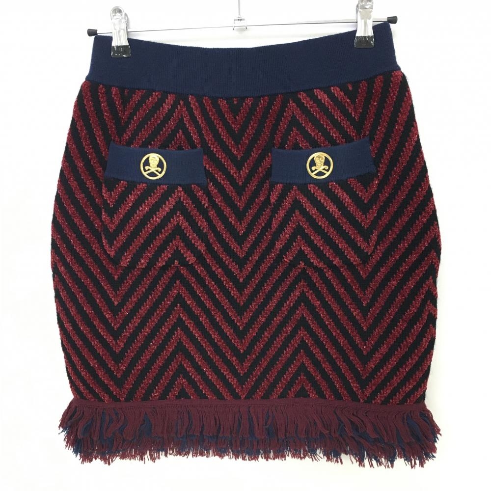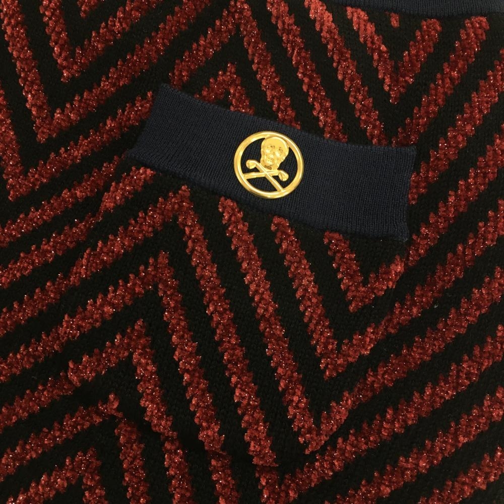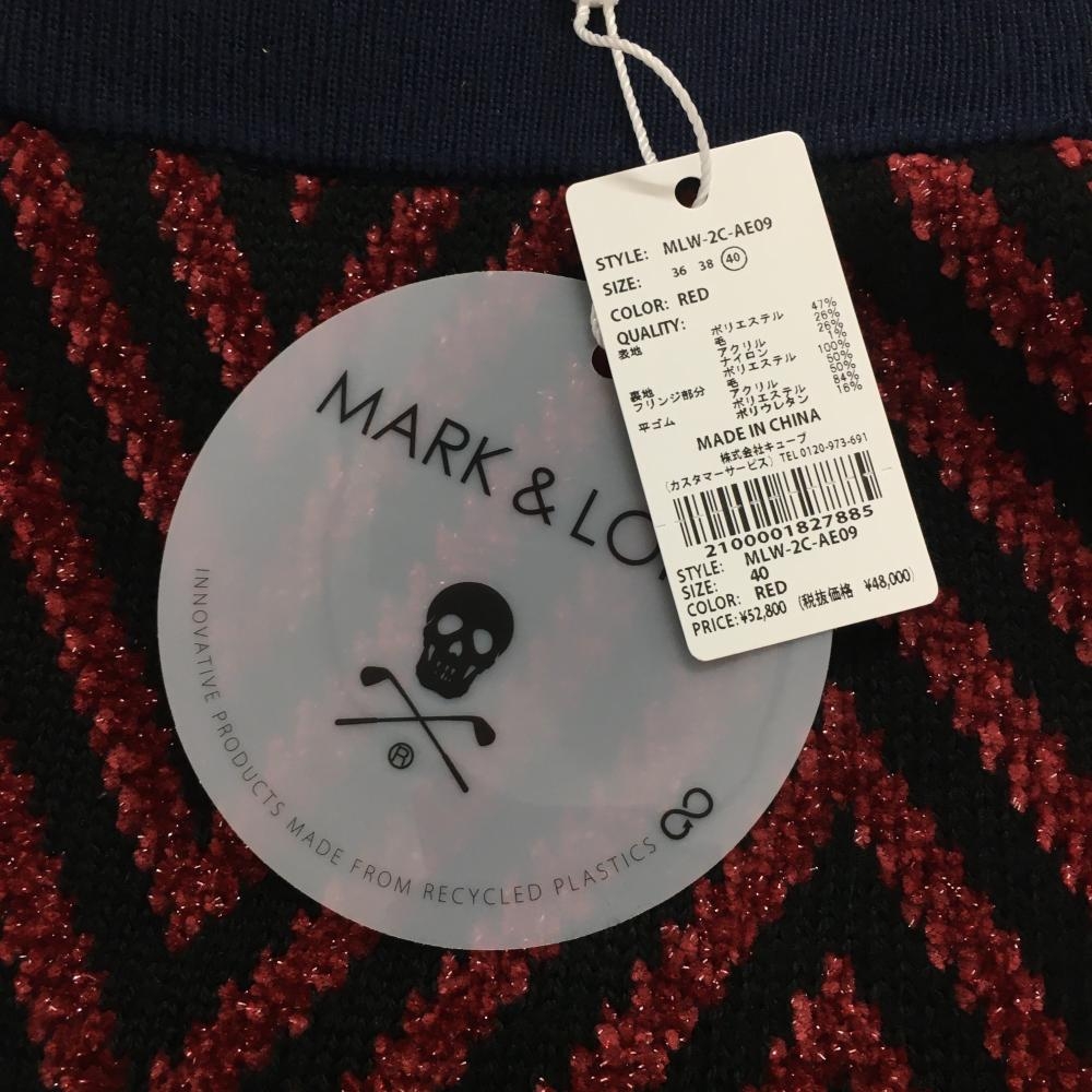 【新品】マークアンドロナ ニットスカート レッド×黒 ヘリンボーン織生地 レディース 40(L) ゴルフウェア 2022年モデル MARK&LONA