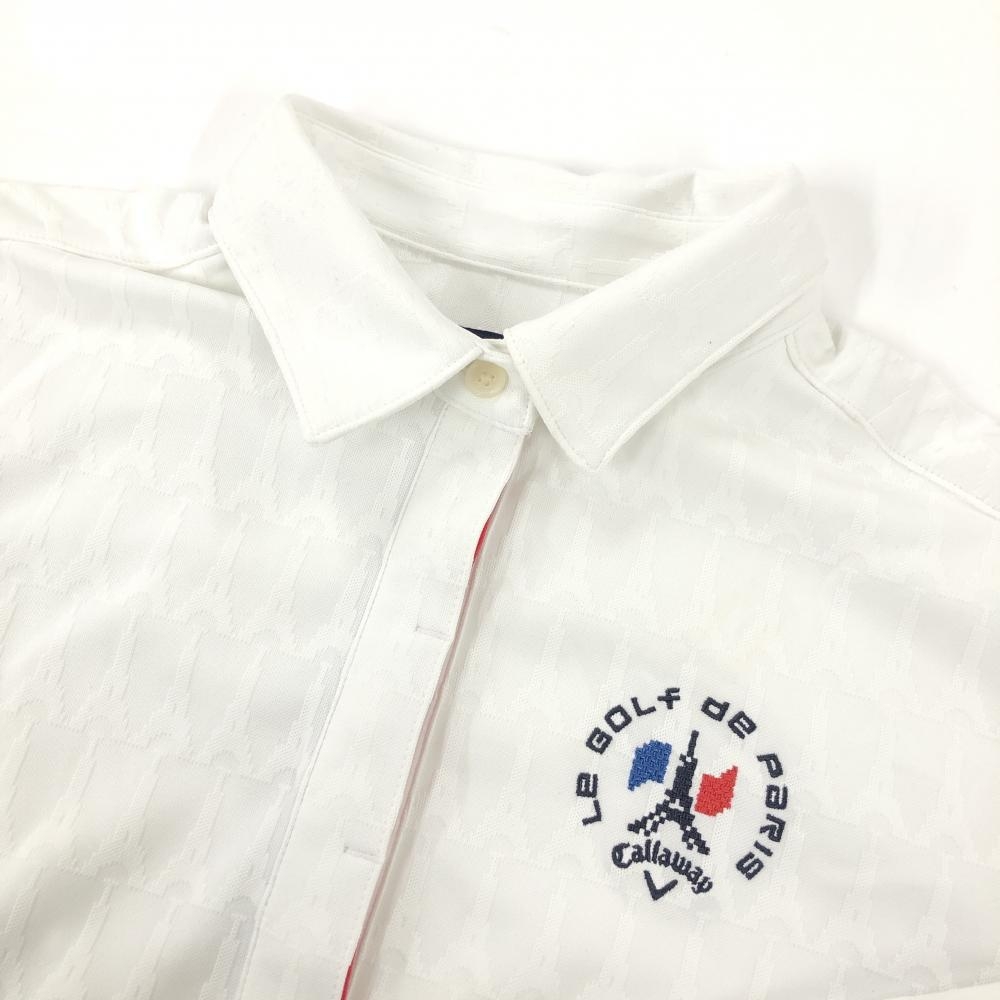 キャロウェイ 長袖ポロシャツ 白 エッフェル塔 総柄 レディース M ゴルフウェア Callaway