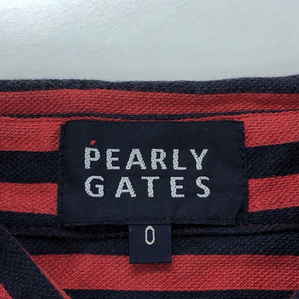 パーリーゲイツ 長袖シャツ レッド×ネイビー ストライプ ボタンダウン レディース 0(S) ゴルフウェア PEARLY GATES