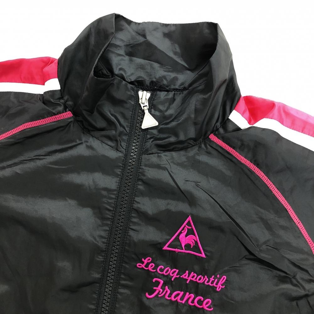 ルコック 半袖ブルゾン 黒×ピンク 袖ライン 裏地メッシュ レディース M ゴルフウェア le coq sportif
