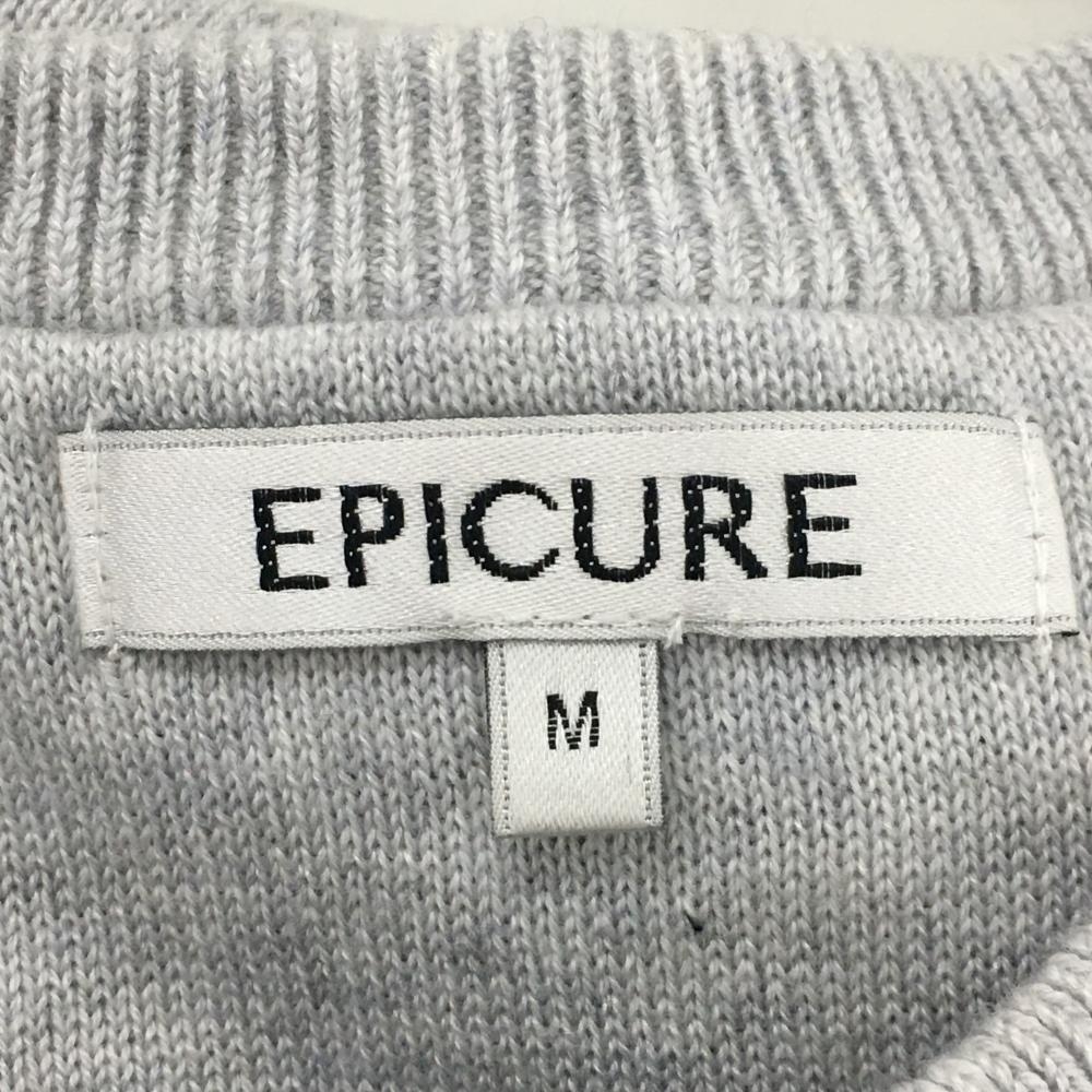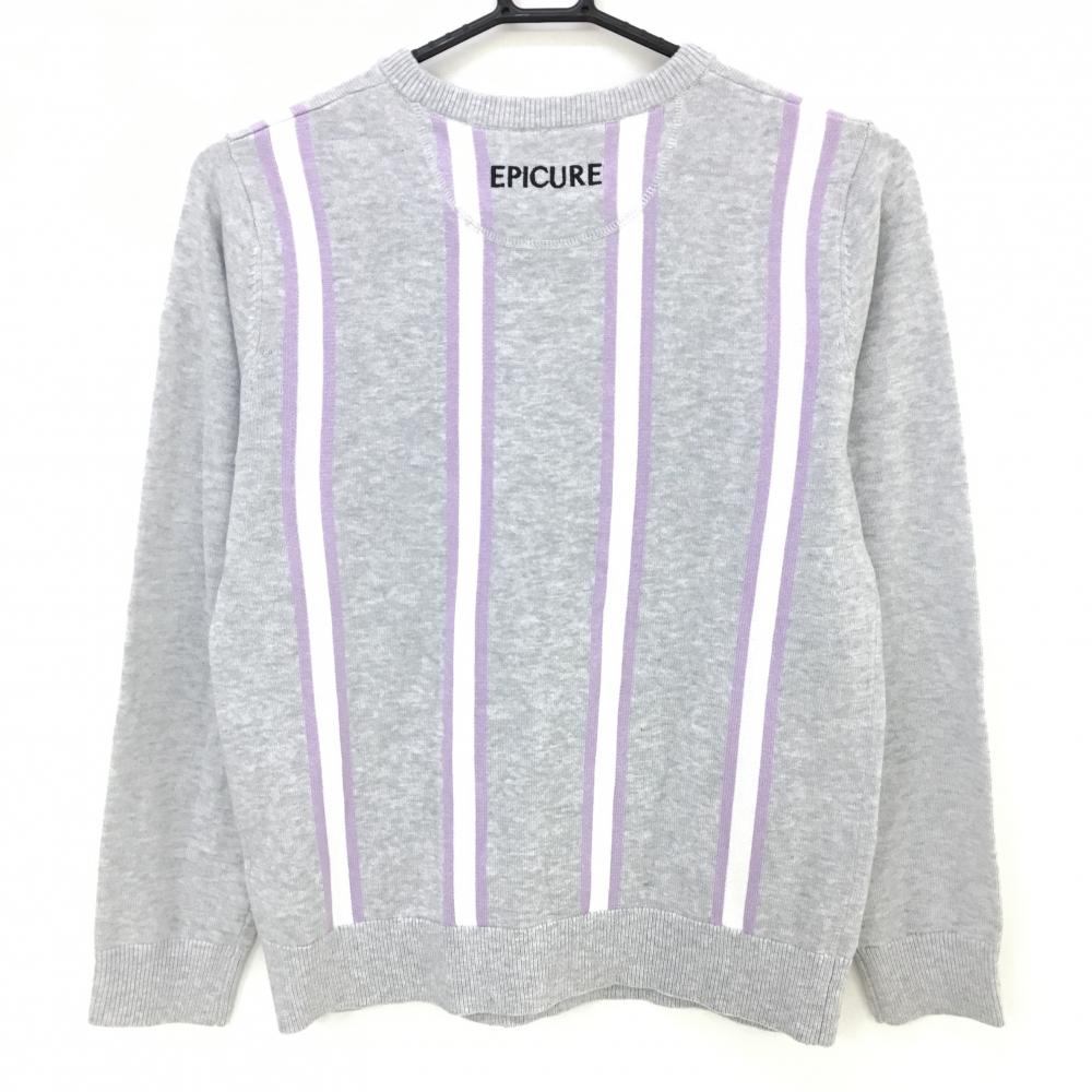 【美品】エピキュール セーター ライトグレー×パープル ストライプ ハーフジップ コットン混 レディース M ゴルフウェア EPICURE