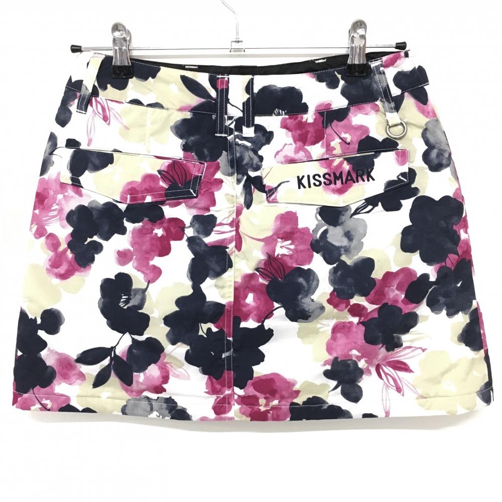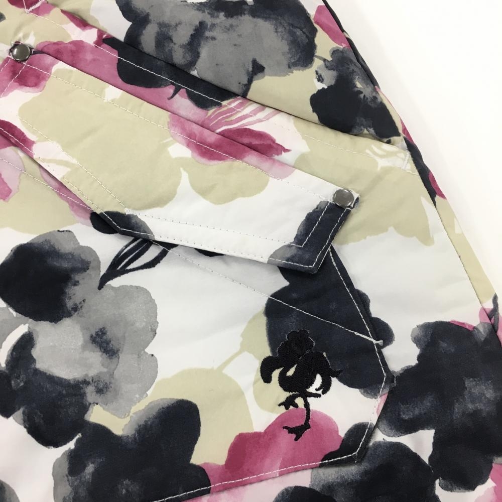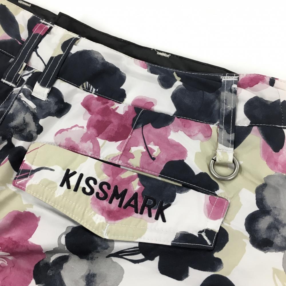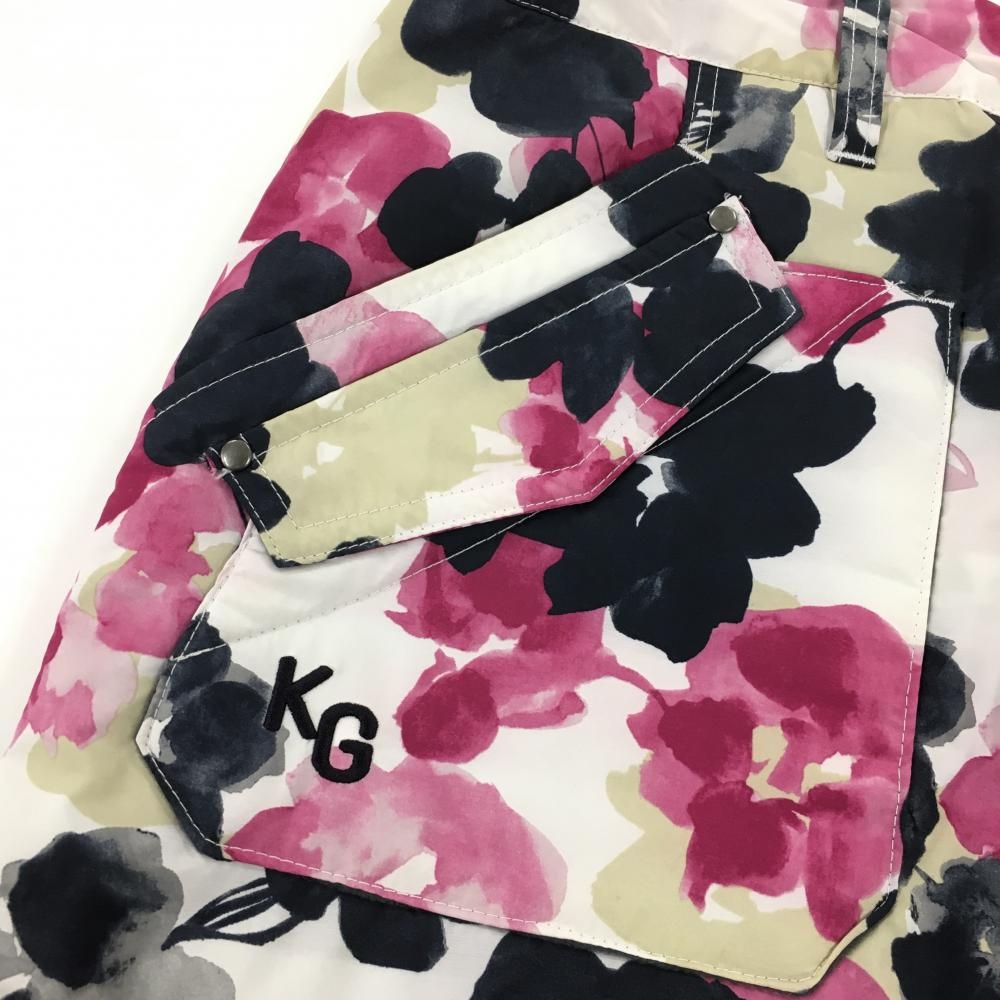 【超美品】キスオンザグリーン 中綿スカート 白×ピンク 花柄 6ポケット レディース 7 ゴルフウェア kiss on the green