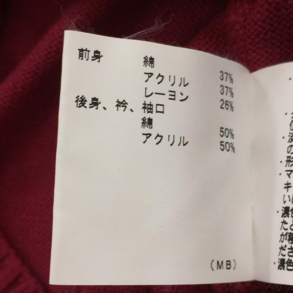 マンシングウェア ニットベスト ピンク×レッド ダイヤ柄 ケーブル編み サイドボタン レディース M ゴルフウェア Munsingwear