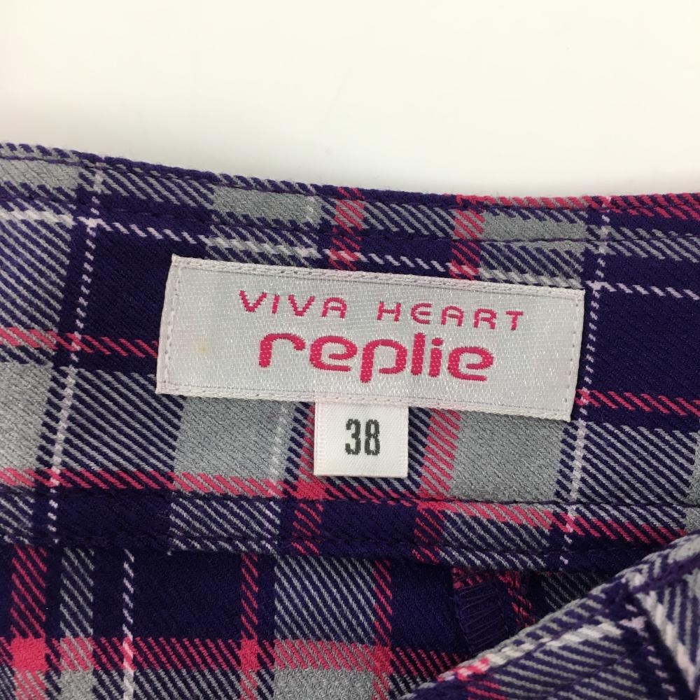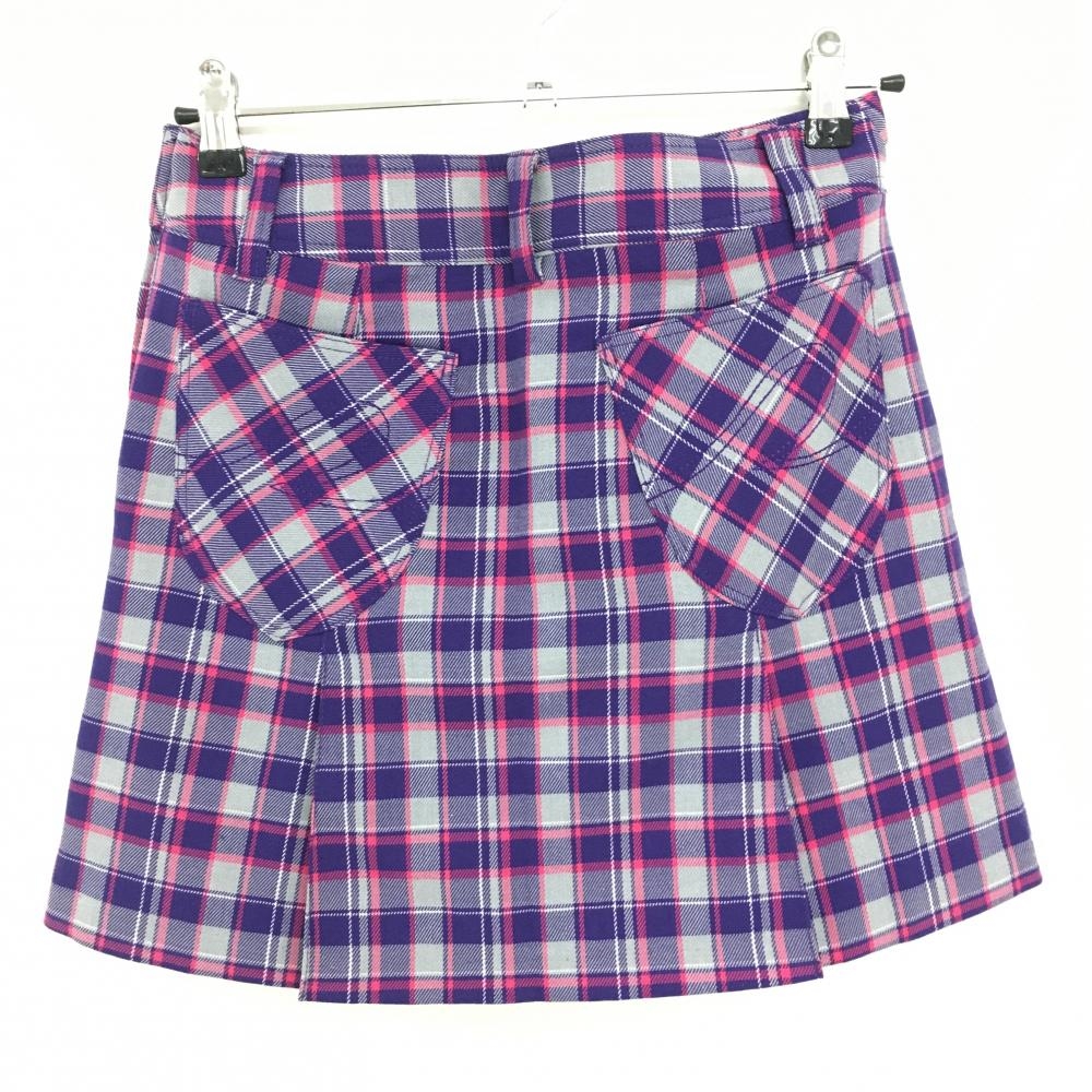 【超美品】ビバハート スカート パープル×グレー チェック ボックスプリーツ レディース 38 ゴルフウェア VIVA HEART