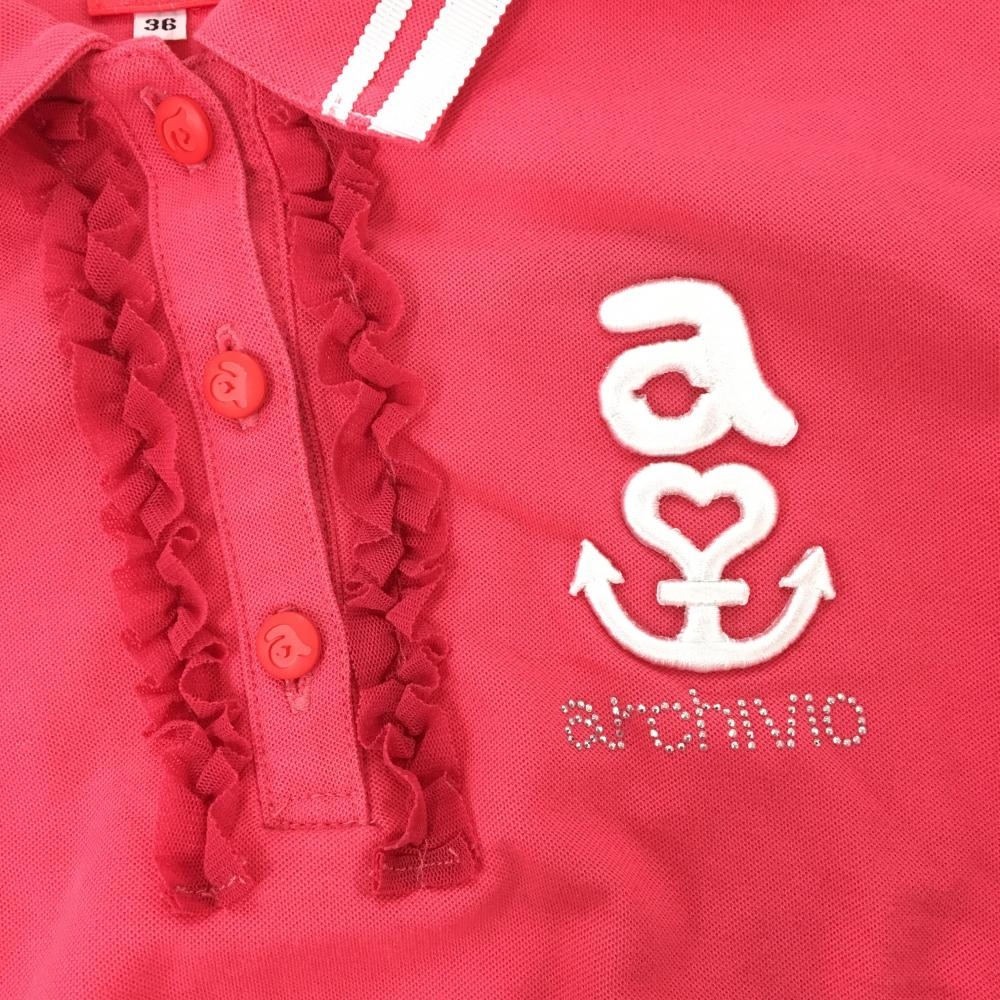 アルチビオ 長袖ポロシャツ ピンク×白 襟ライン フリル レディース 36 ゴルフウェア archivio