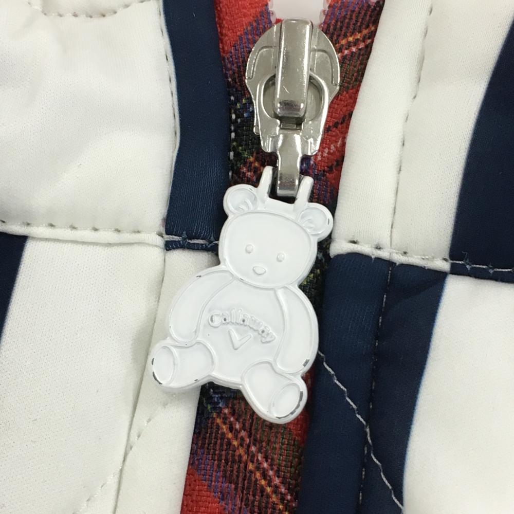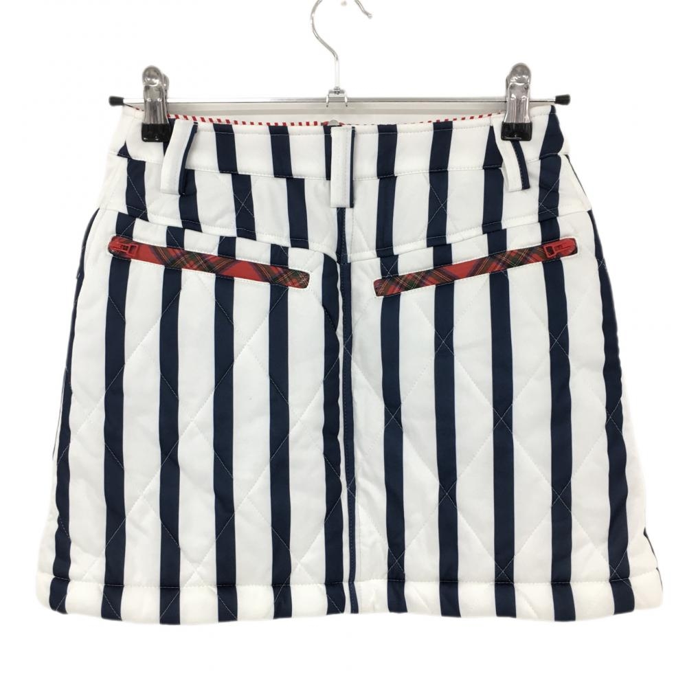 【超美品】キャロウェイ 中綿スカート 白×ネイビー ストライプ フルジップ レディース SS ゴルフウェア Callaway