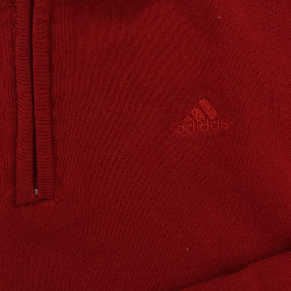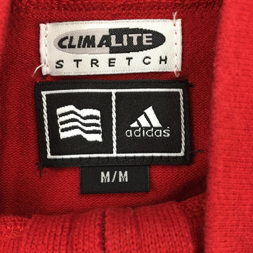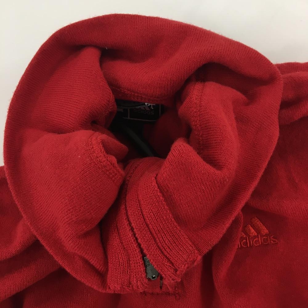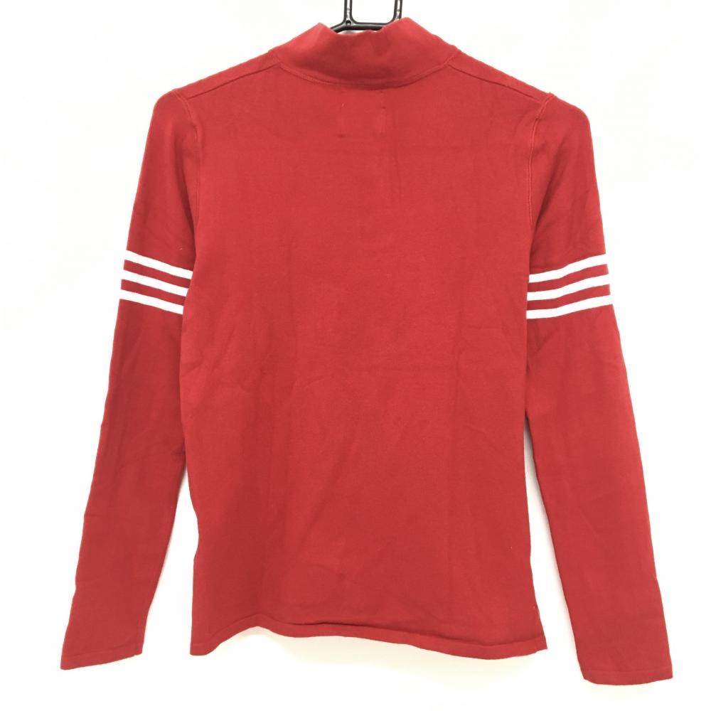 アディダス 長袖ハイネックシャツ レッド×白 ハーフジップ 袖3ライン レディース M/M ゴルフウェア adidas