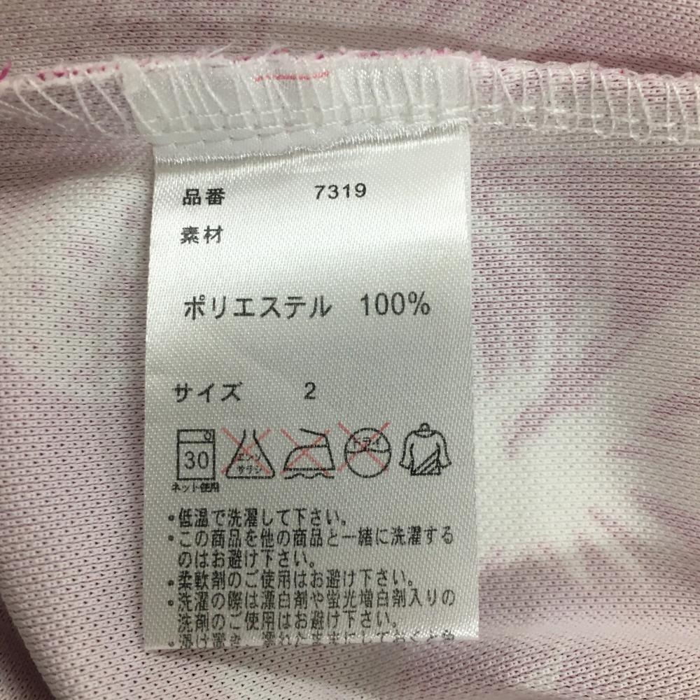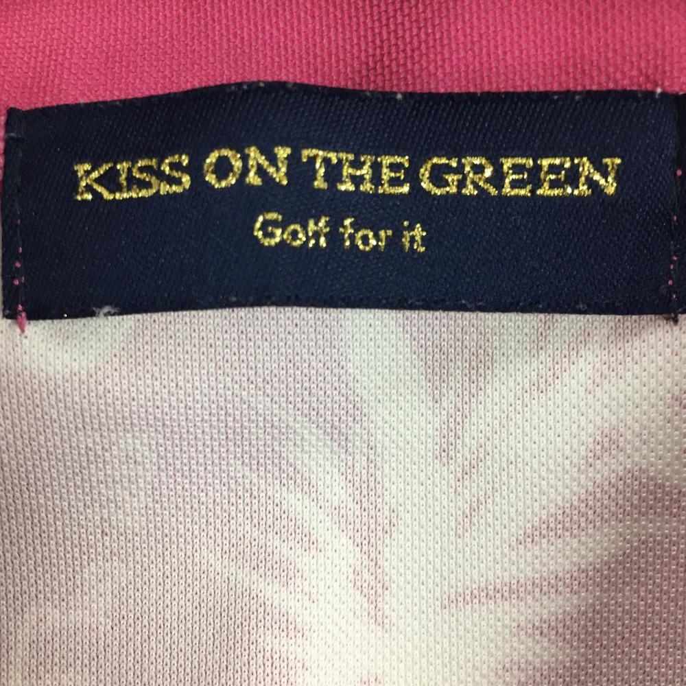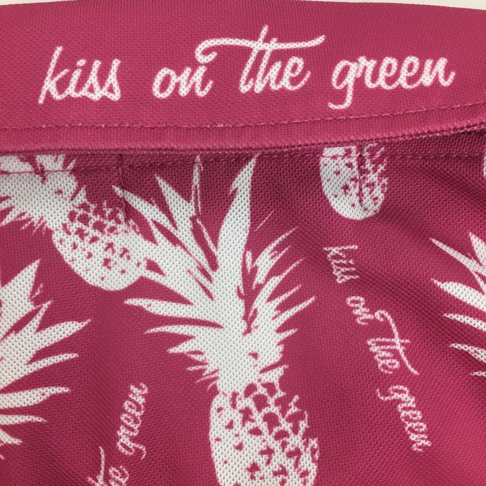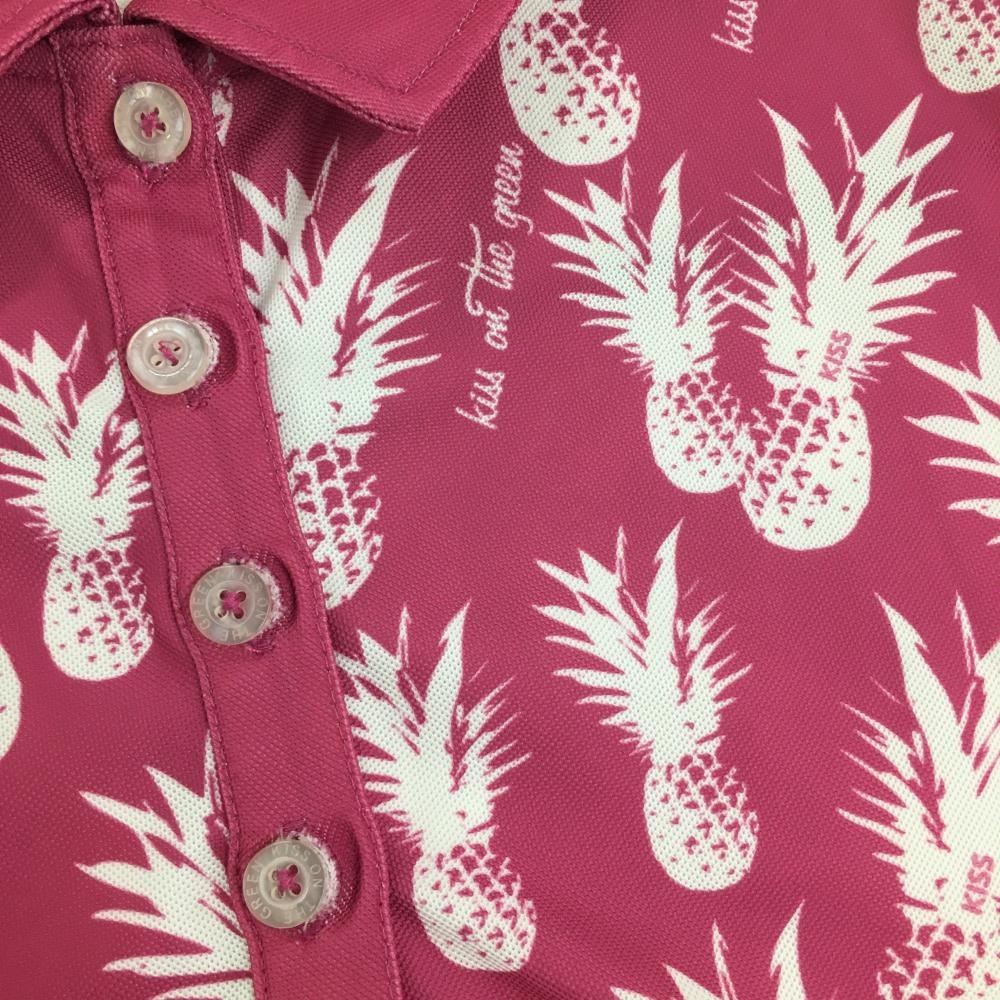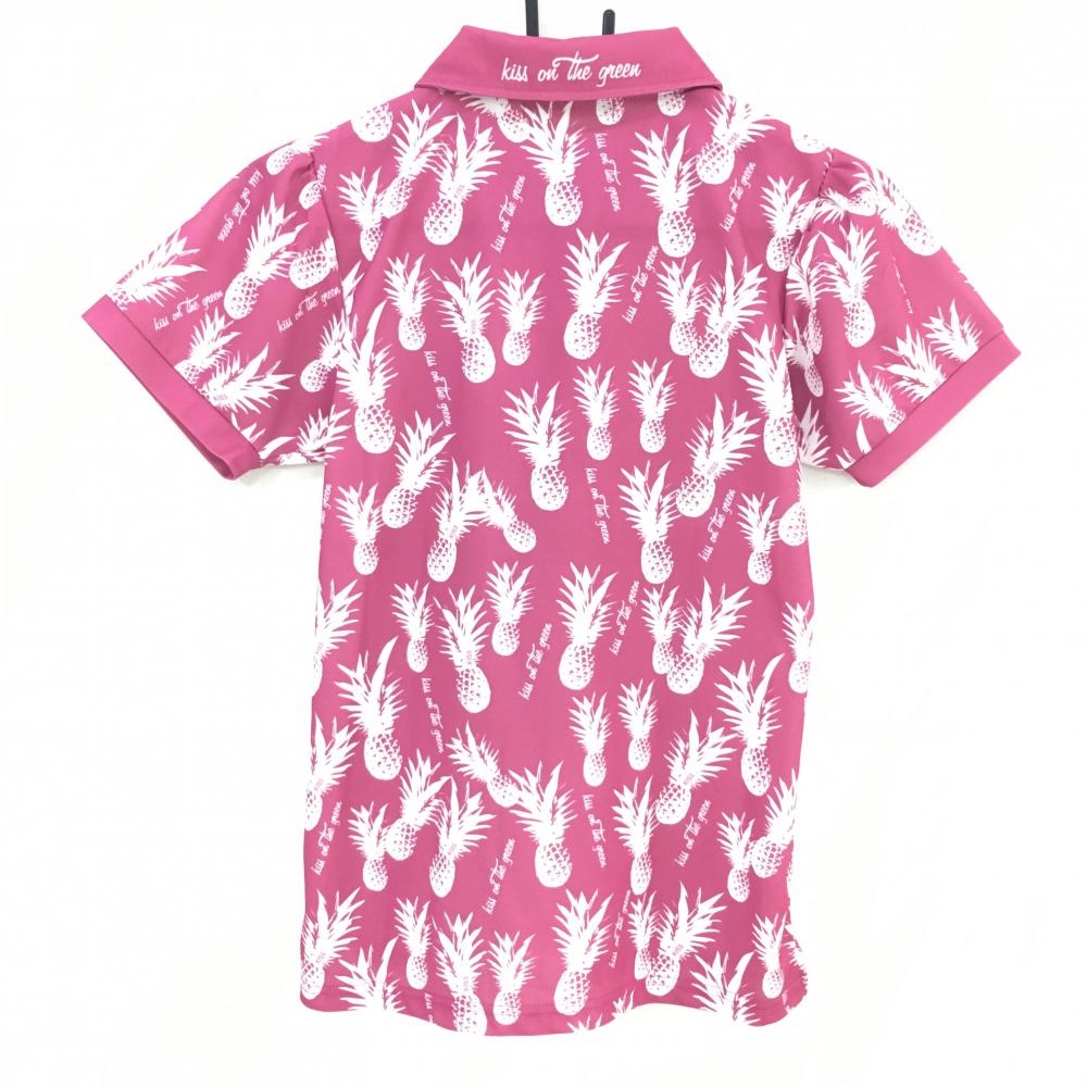【超美品】キスオンザグリーン 半袖ポロシャツ ピンク×白 パイナップル柄 レディース 2(M) ゴルフウェア kiss on the green