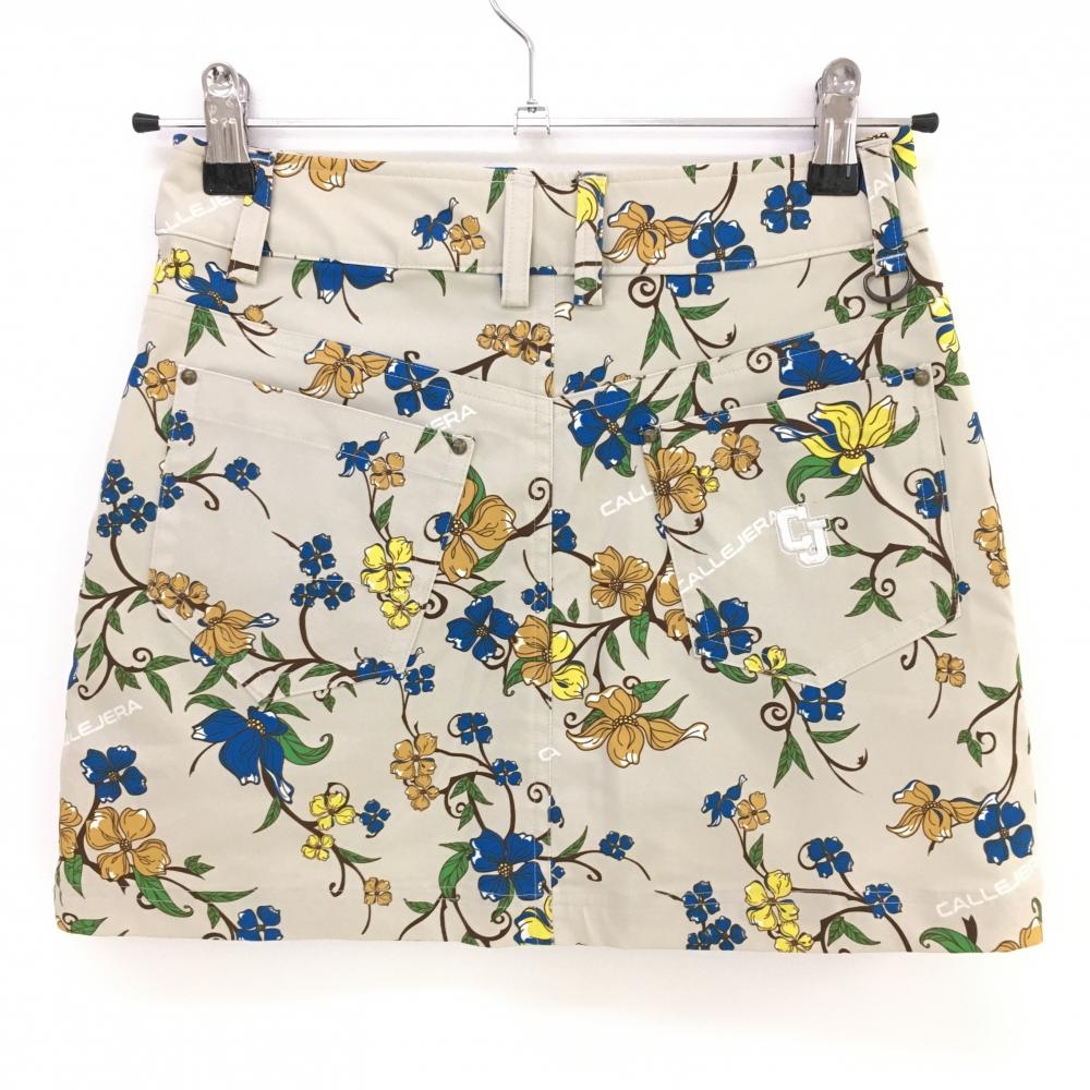 【美品】カジェヘラ スカート ベージュ×ブルー 花柄 総柄 ストレッチ レディース 0 ゴルフウェア CALLEJER