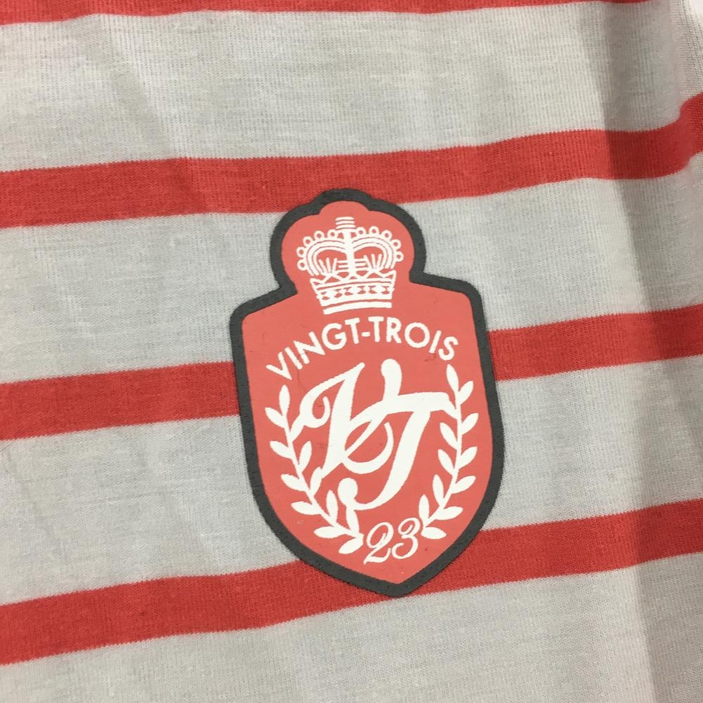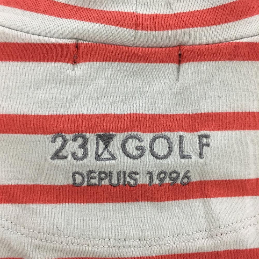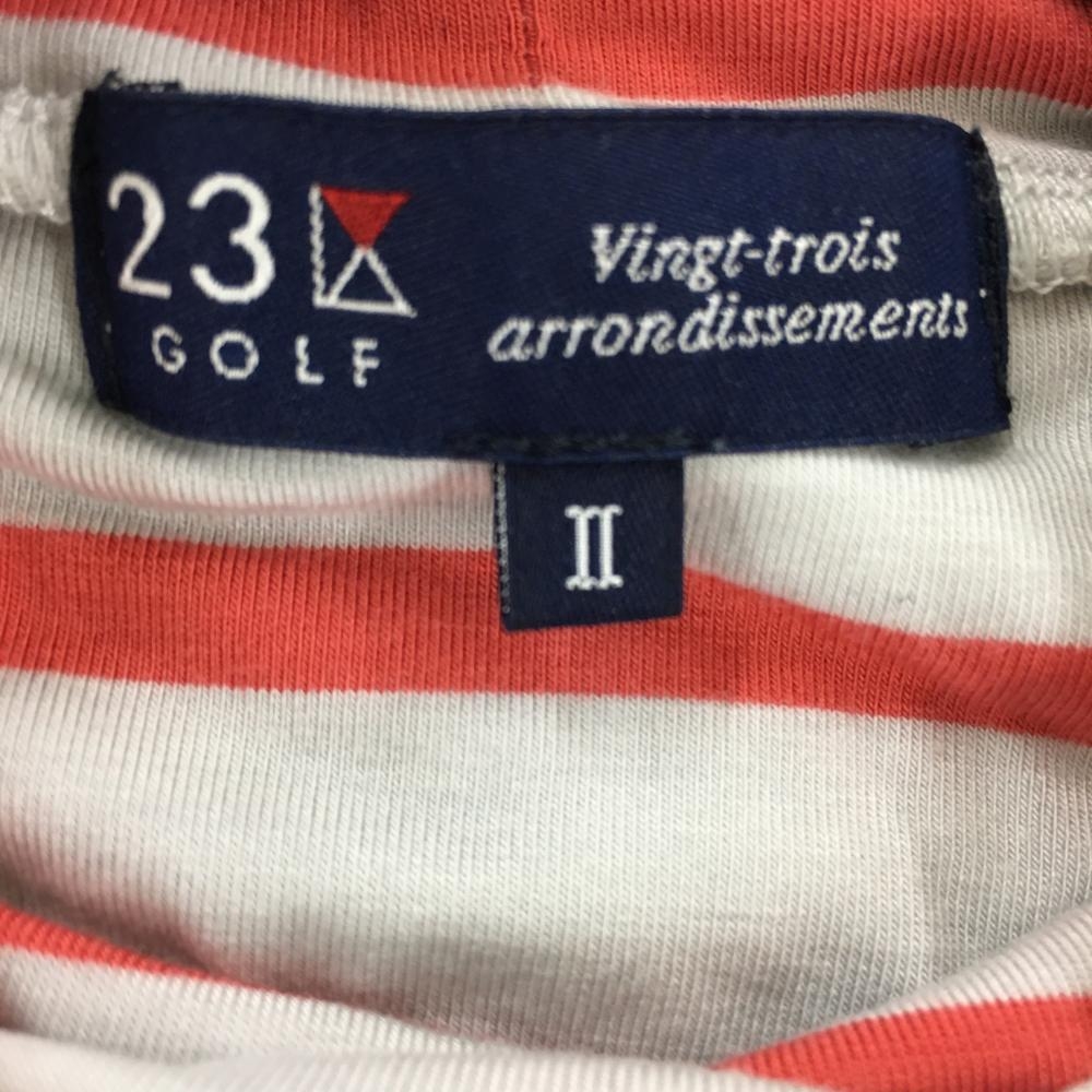 23区ゴルフ 長袖ハイネックシャツ グレー×レッド ボーダー柄 ストレッチ レディース II(L) ゴルフウェア 23区