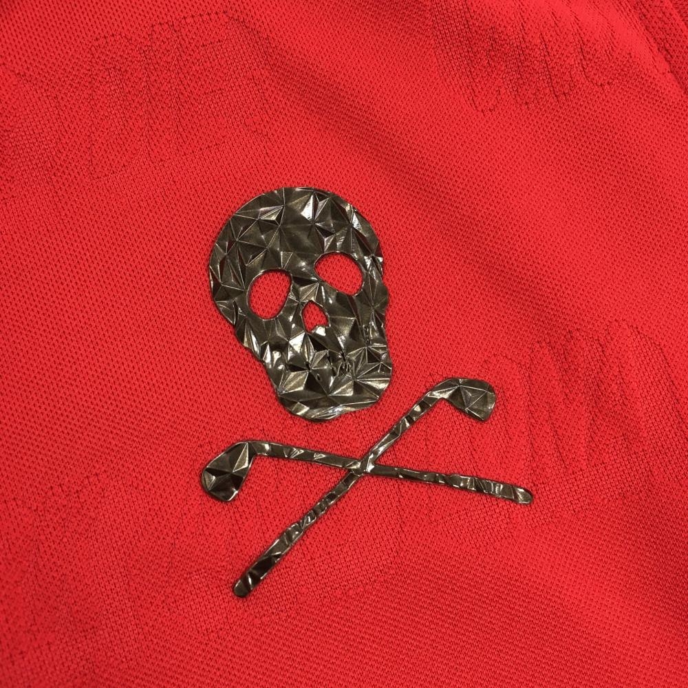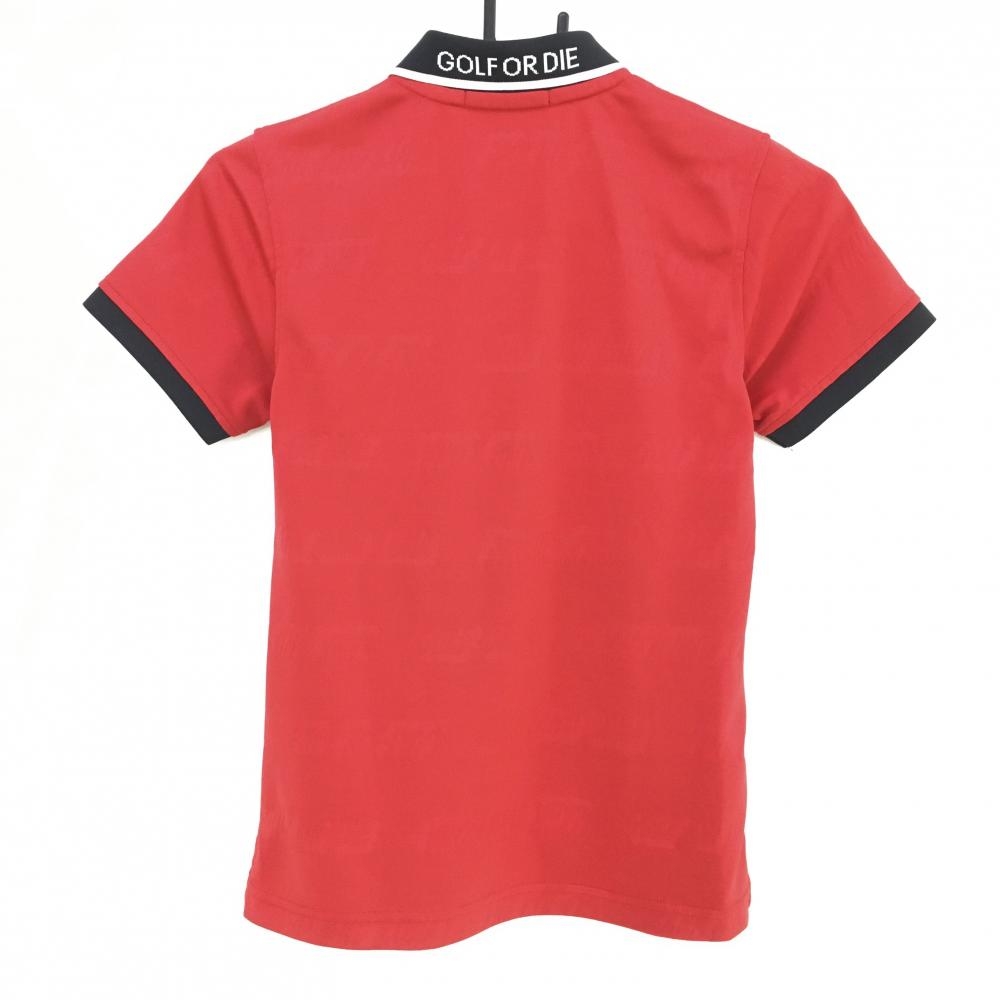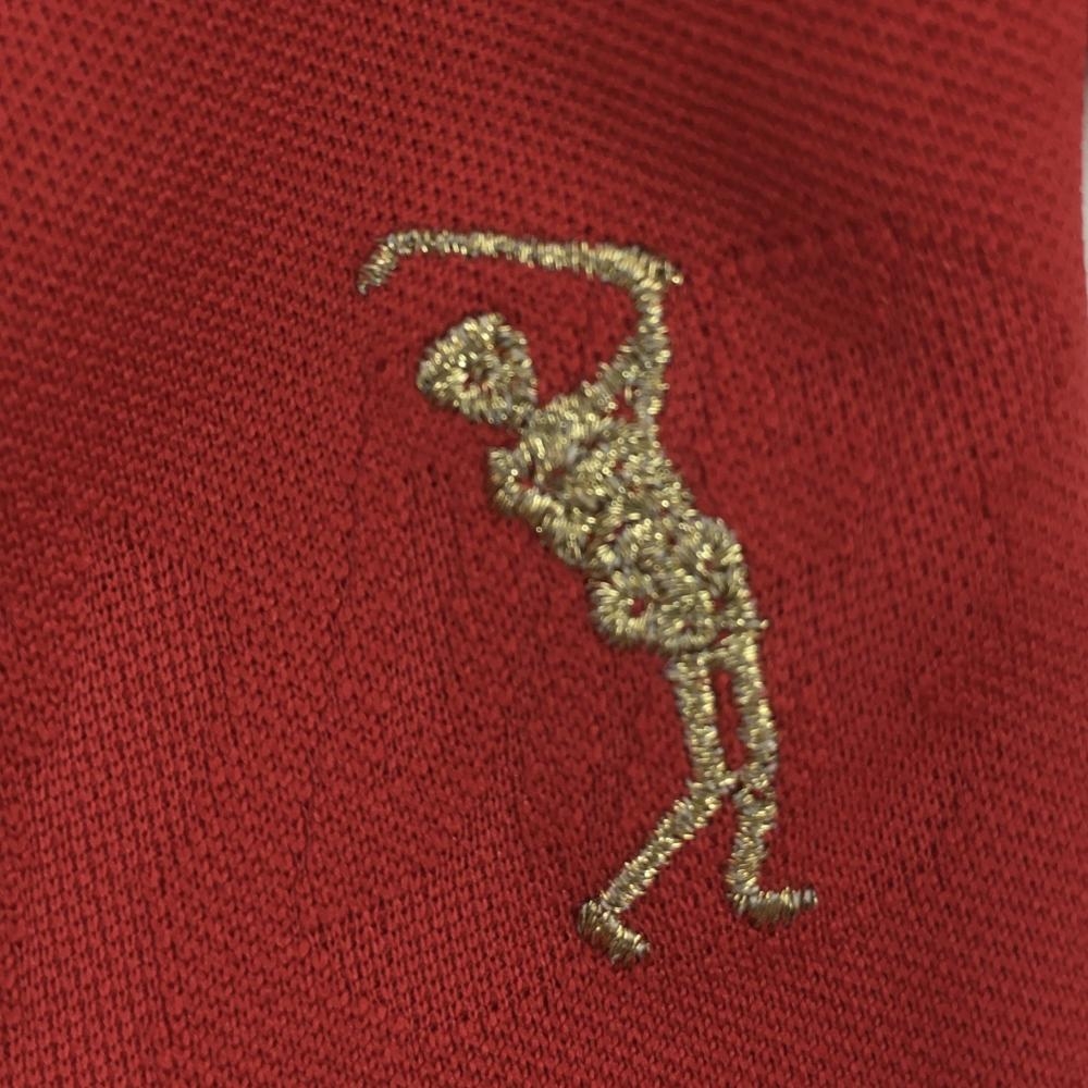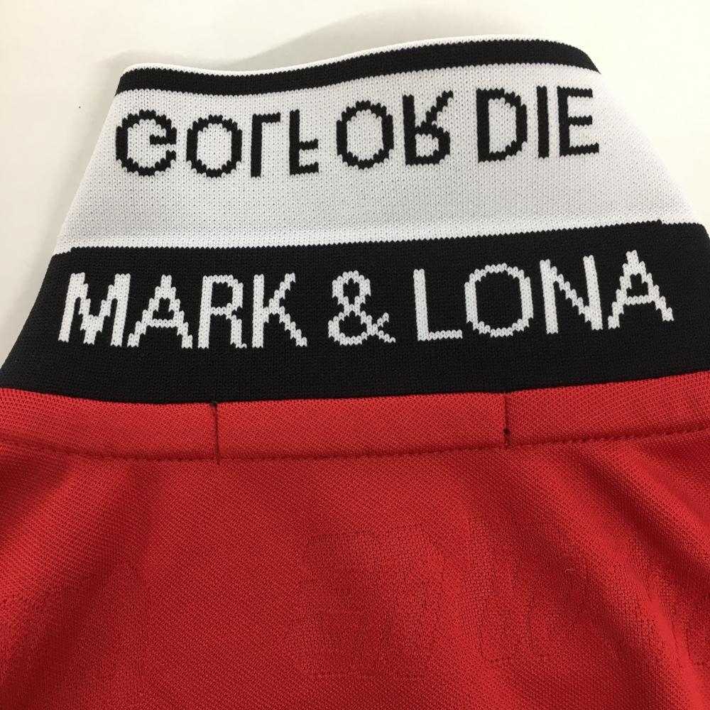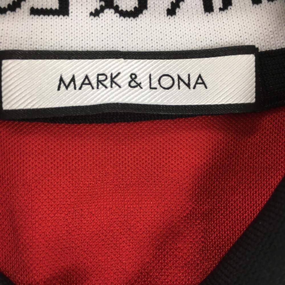 【超美品】マークアンドロナ 半袖ポロシャツ レッド 総柄織生地 レディース 36 ゴルフウェア MARK&LONA