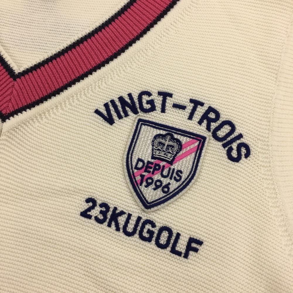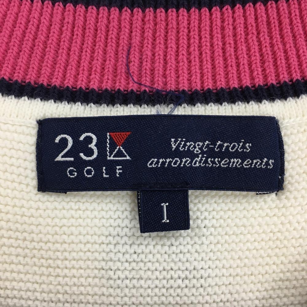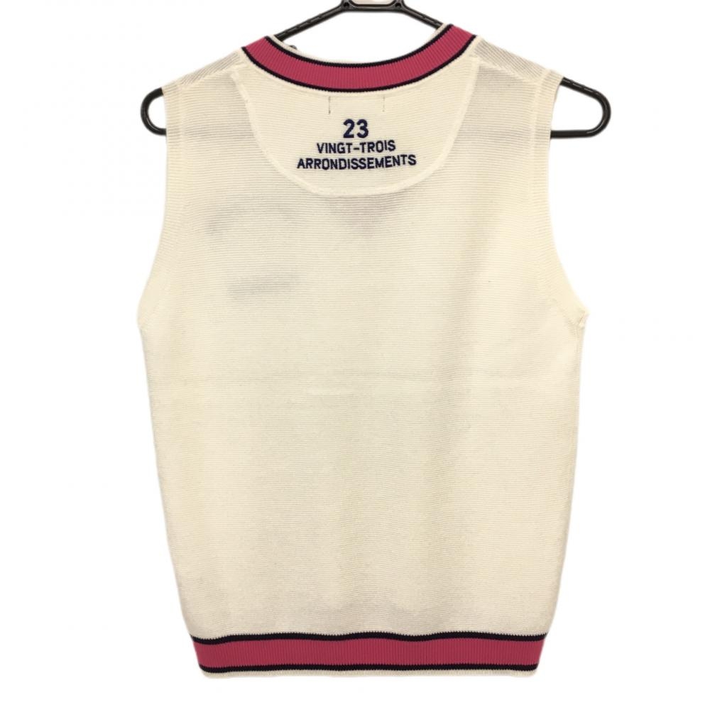 【超美品】23区ゴルフ ニットベスト 白×ピンク Vネック コットン混 レディース Ⅰ(M) ゴルフウェア 23区