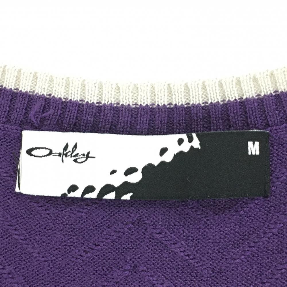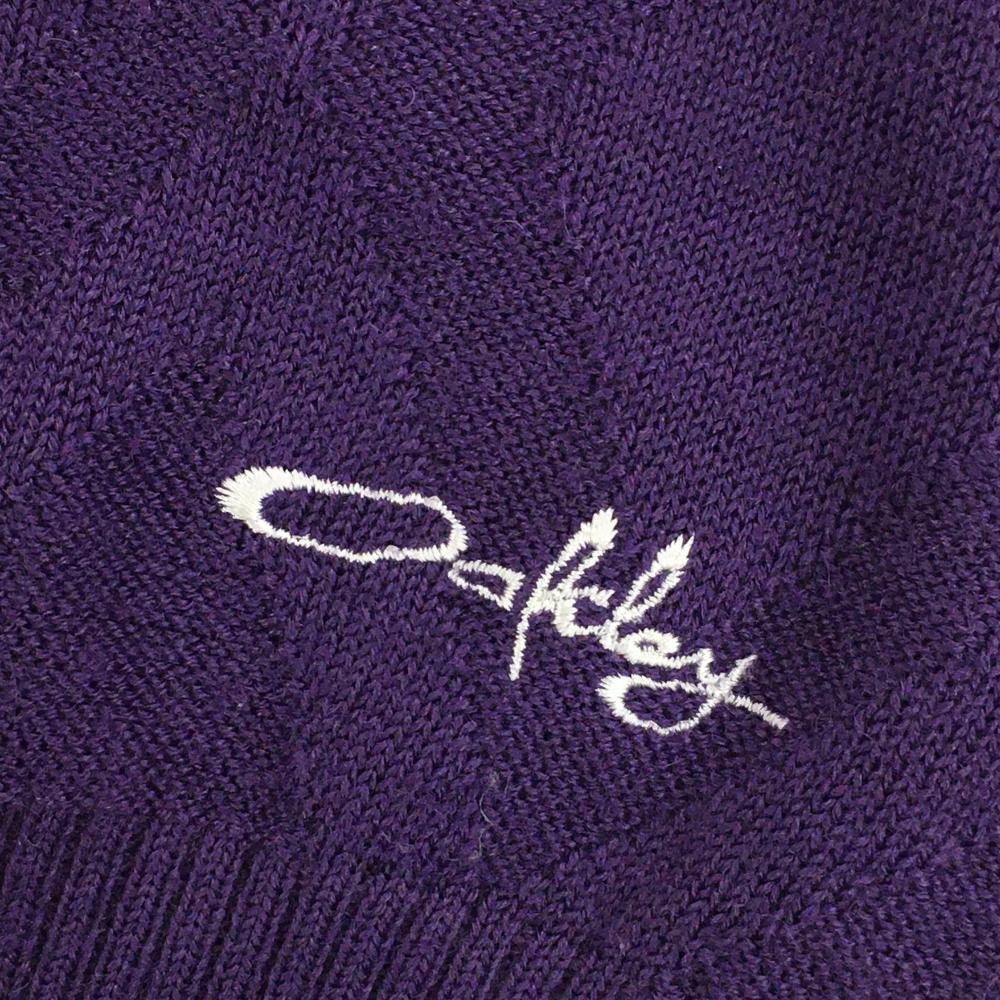 【超美品】オークリー ニットベスト パープル ダイヤ柄 Vネック 透かし編み レディース M ゴルフウェア Oakley
