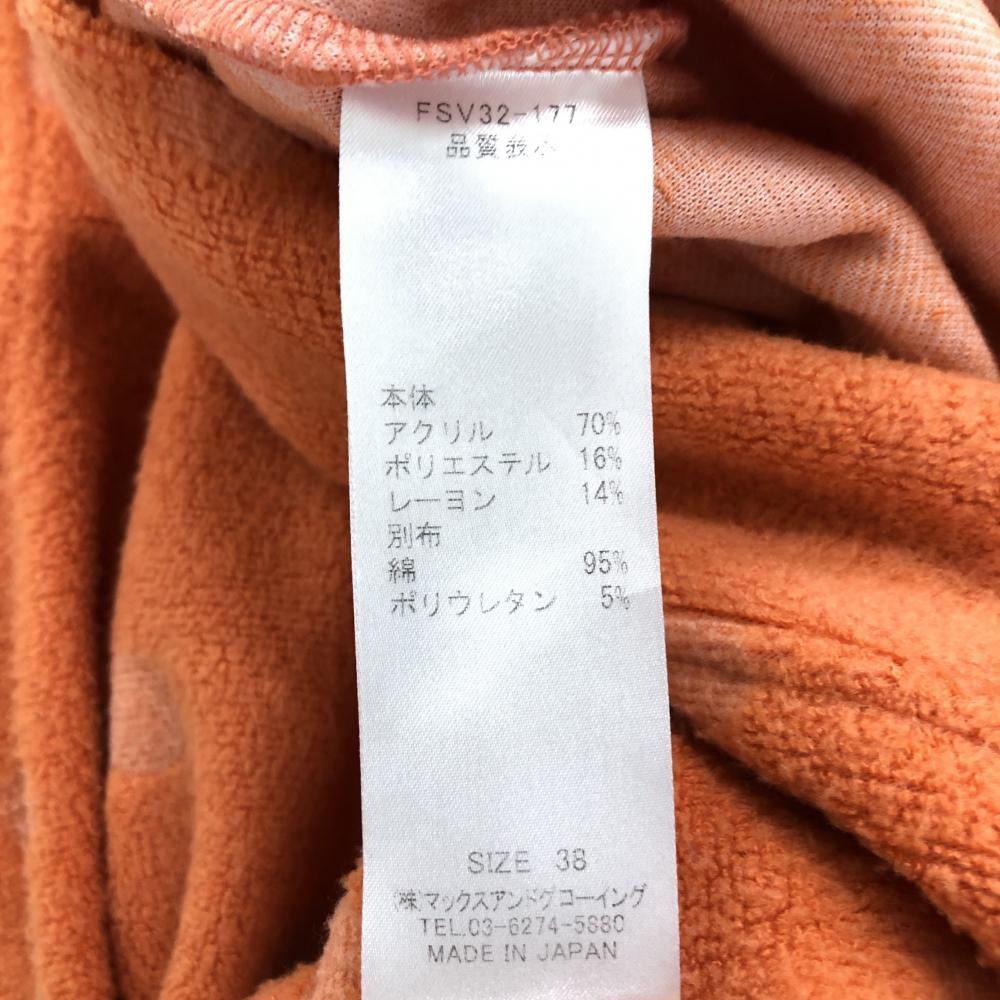 【美品】ゾーイ パーカーベスト オレンジ ドット柄 起毛 パイル地風 レディース 38(M) ゴルフウェア ZOY