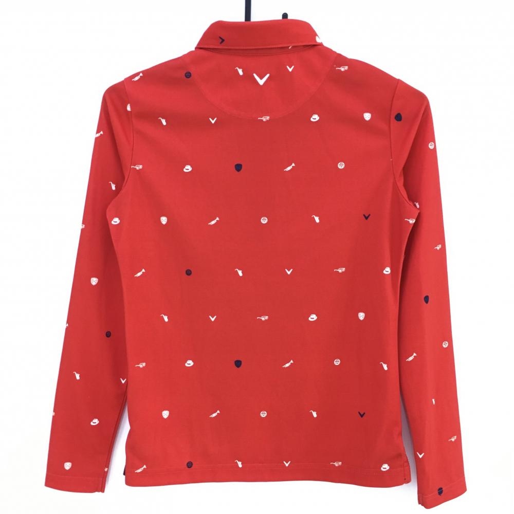 【超美品】キャロウェイ 長袖ポロシャツ レッド×白 総柄 ボタンダウン レディース S ゴルフウェア Callaway