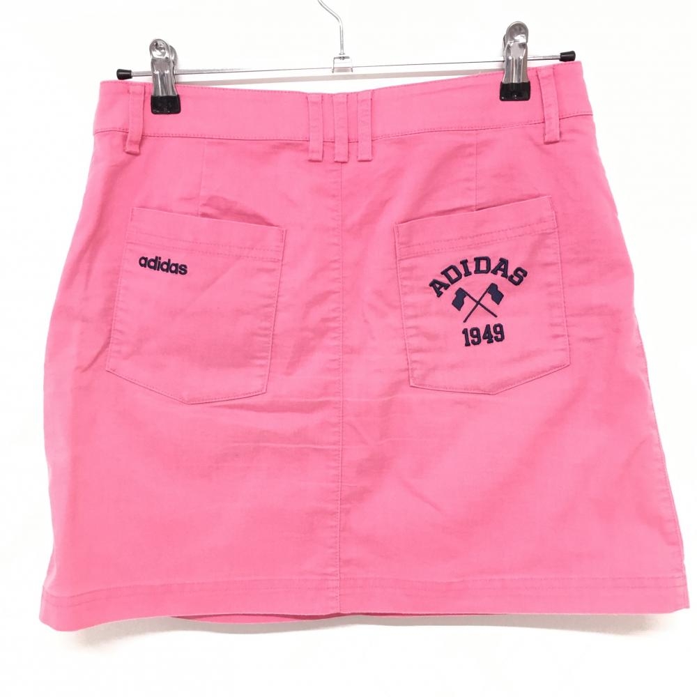 アディダス ストレッチスカート ピンク シンプル ロゴネイビー レディース L/G ゴルフウェア adidas