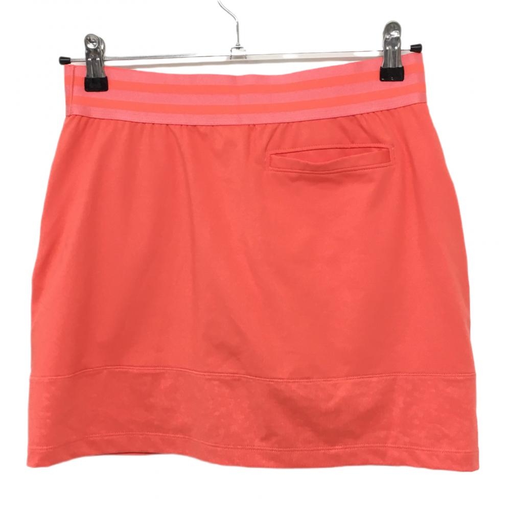 【超美品】アディダス ストレッチスカート サーモンピンク 一部地模様 内側インナーパンツ 3ライン レディース XS ゴルフウェア adidas