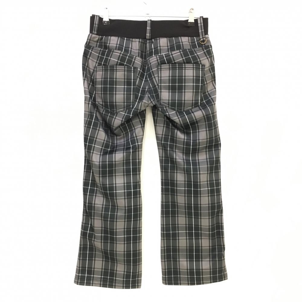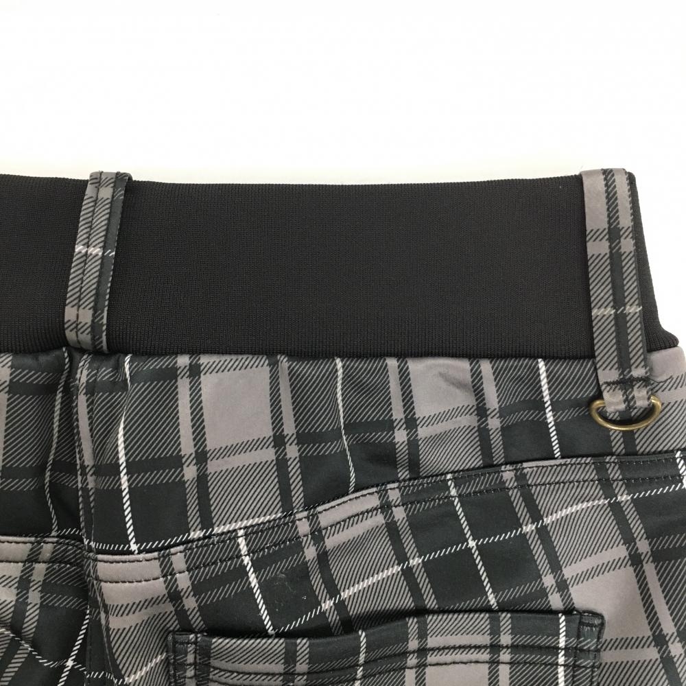 【美品】フィラゴルフ パンツ ライトグレー×黒 チェック柄 裏起毛 後ろウエストゴム レディース L ゴルフウェア FILA GOLF