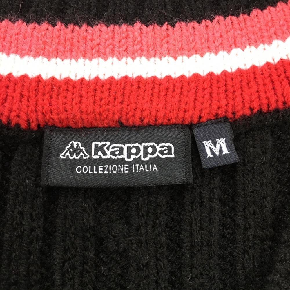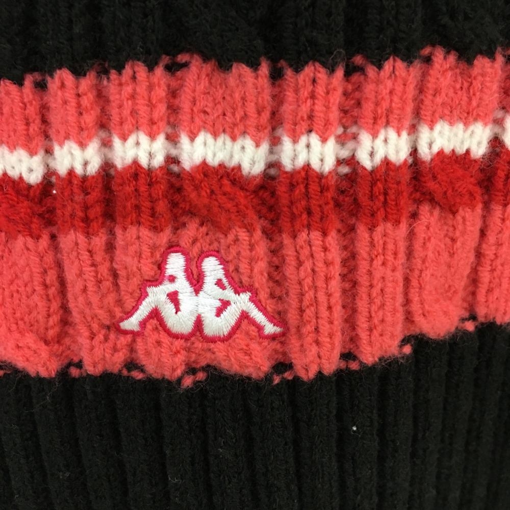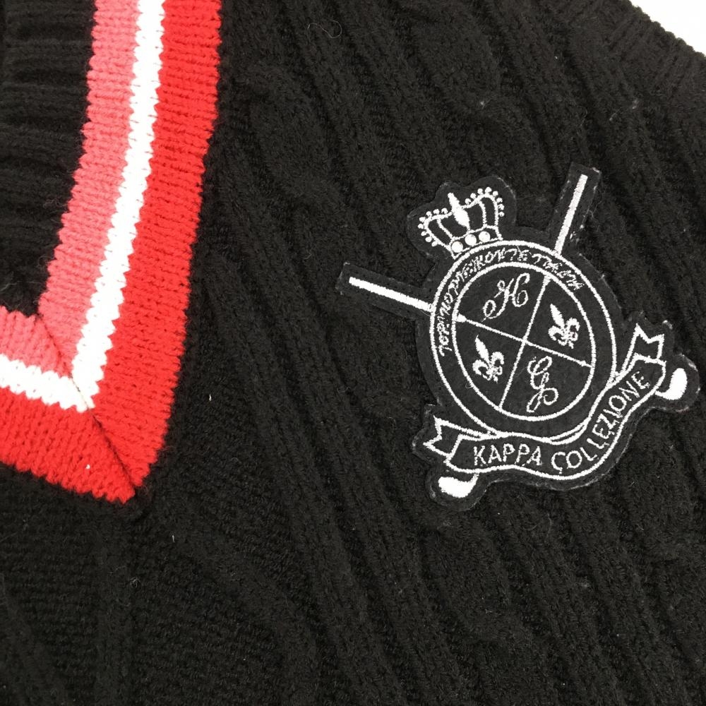 【美品】カッパ ニットベスト 黒×レッド ケーブル編み ウール混 Vネック レディース M ゴルフウェア Kappa
