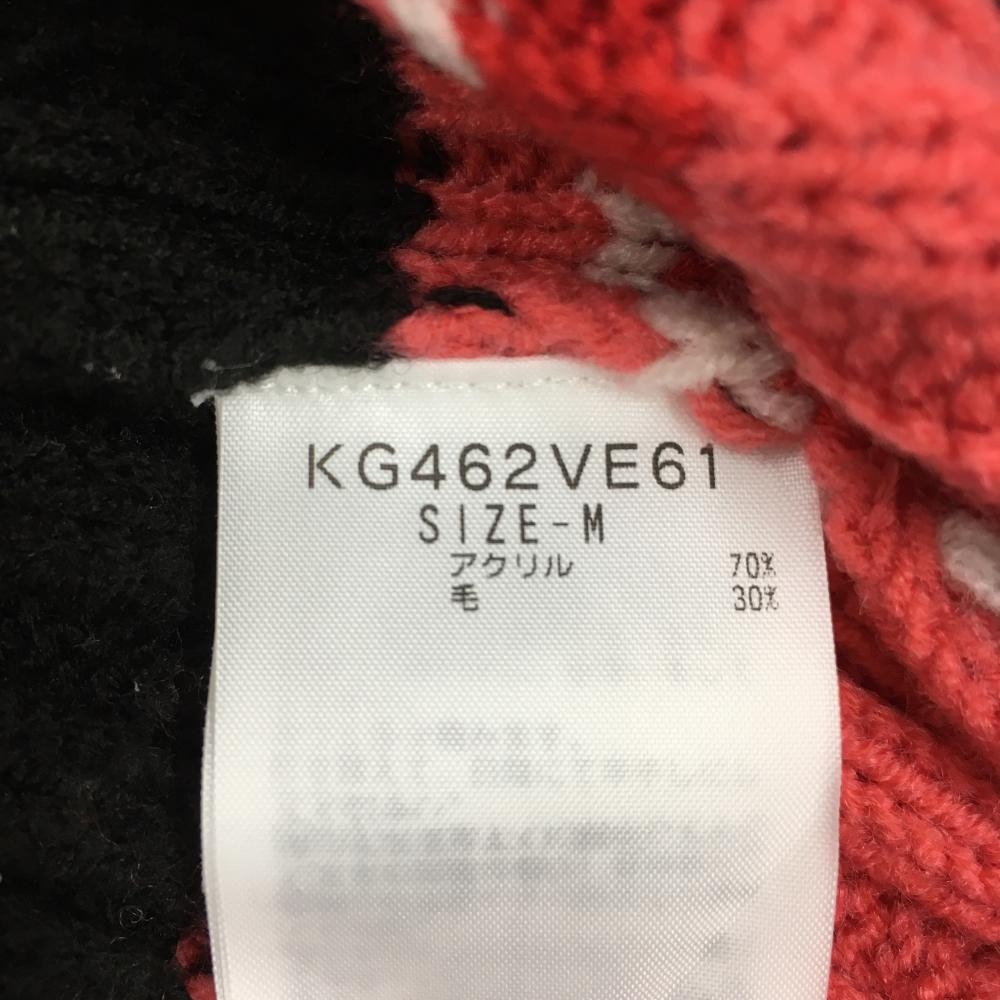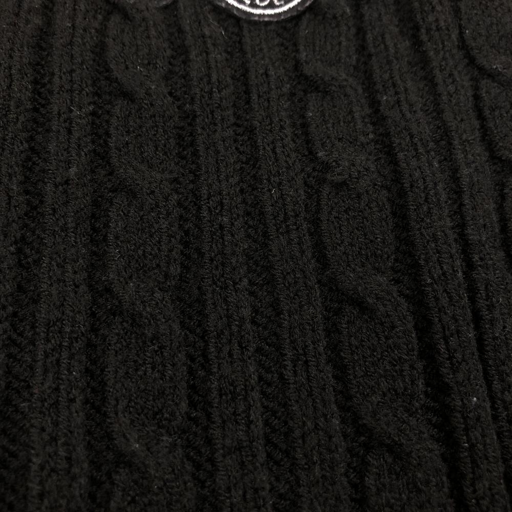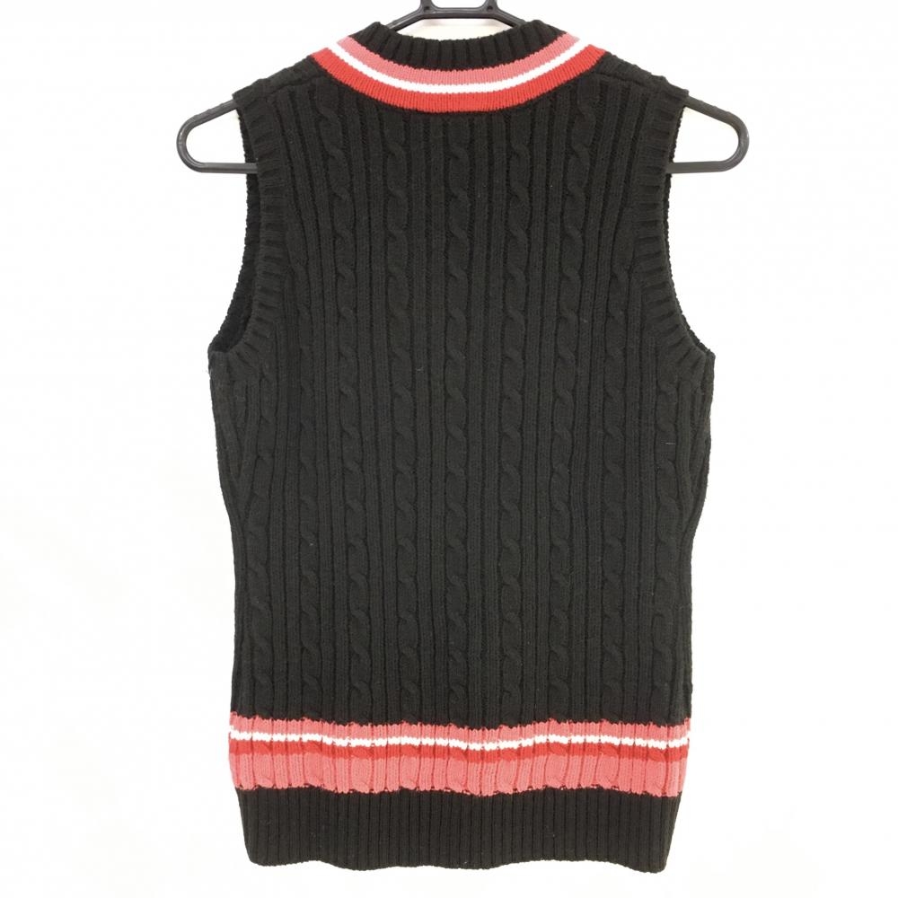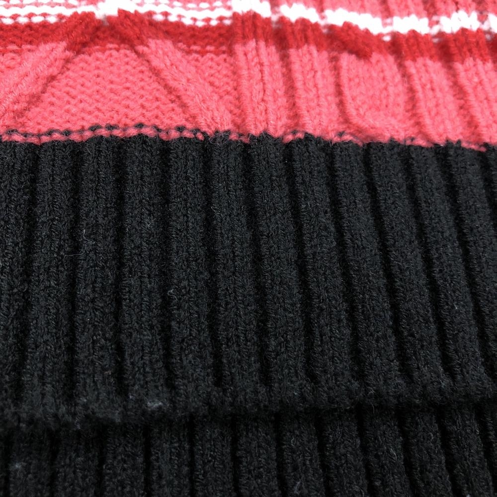 【美品】カッパ ニットベスト 黒×レッド ケーブル編み ウール混 Vネック レディース M ゴルフウェア Kappa
