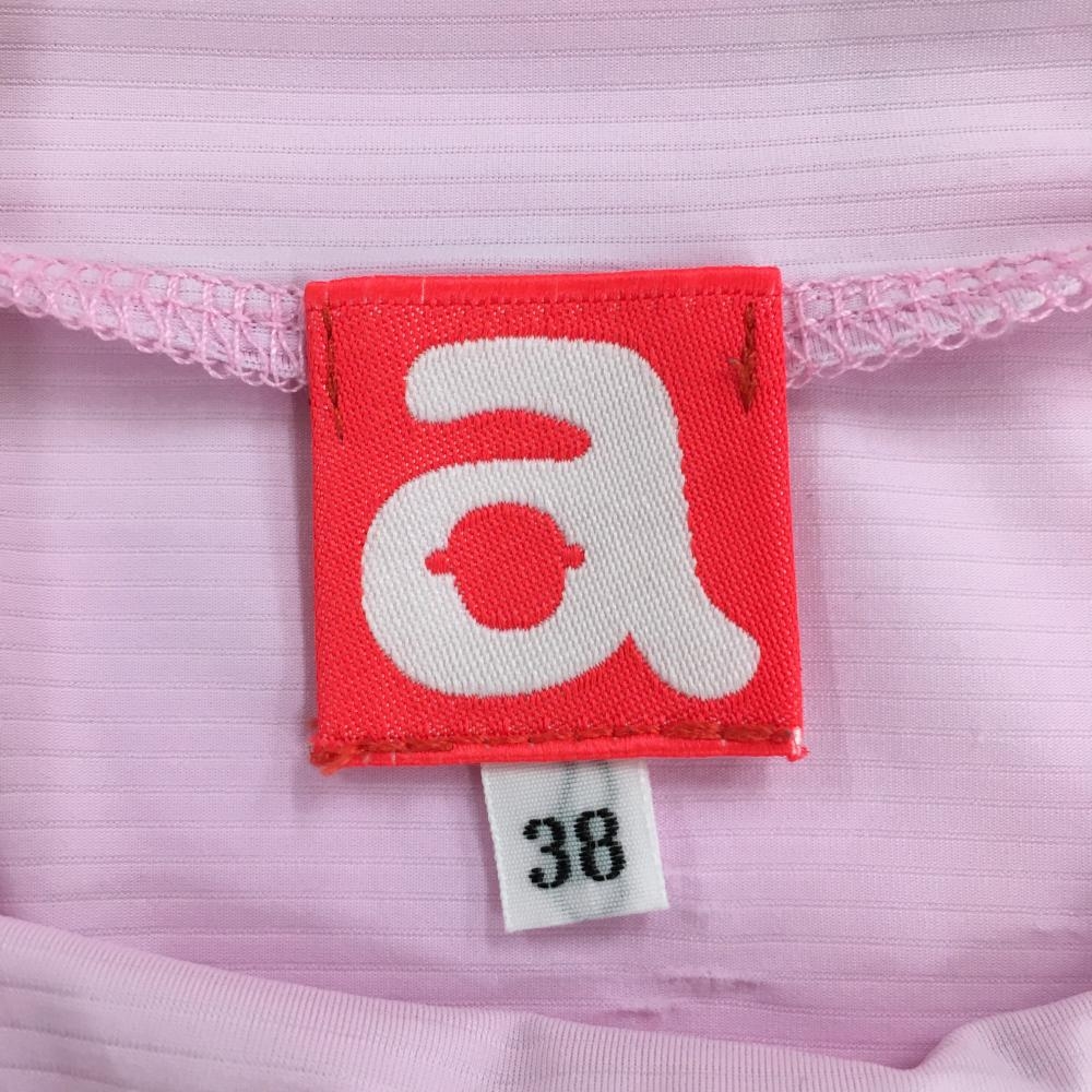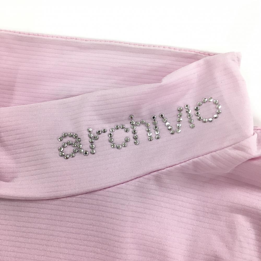 アルチビオ 長袖ハイネックシャツ ピンク ボーダー織生地 ネックスタッツロゴ レディース 38 ゴルフウェア archivio