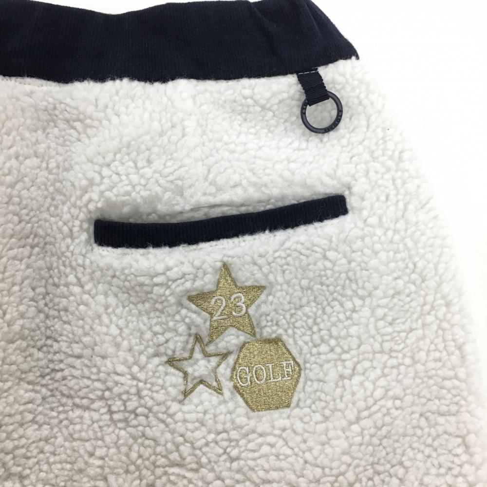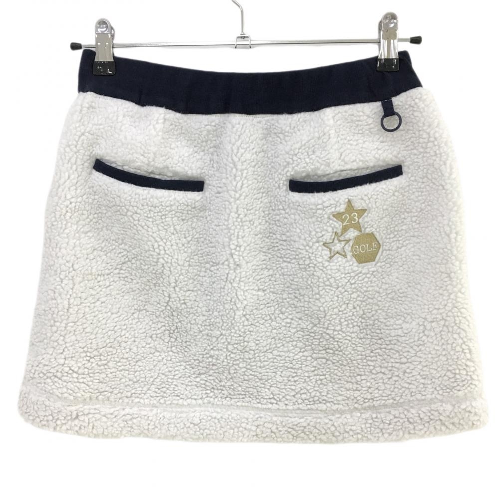 23区ゴルフ ボアスカート 白×ネイビー 裏地付き ウエストゴム 調節紐 レディース I(M) ゴルフウェア 23区