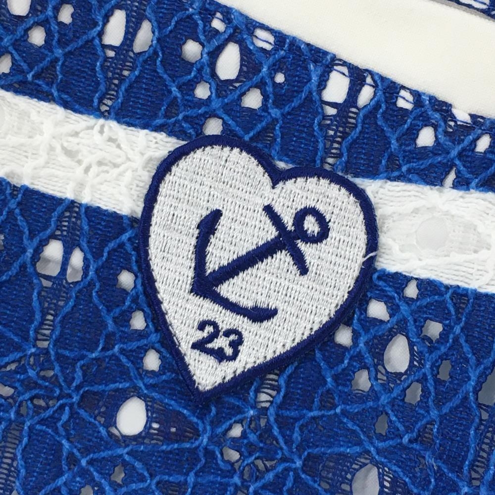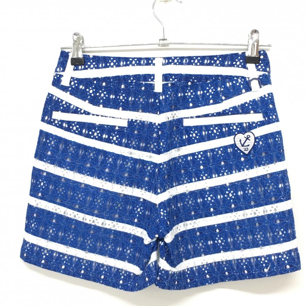 【超美品】23区ゴルフ キュロットスカート ブルー×白 ボーダー柄 レース コットン混 レディース 58(XS) ゴルフウェア 23区