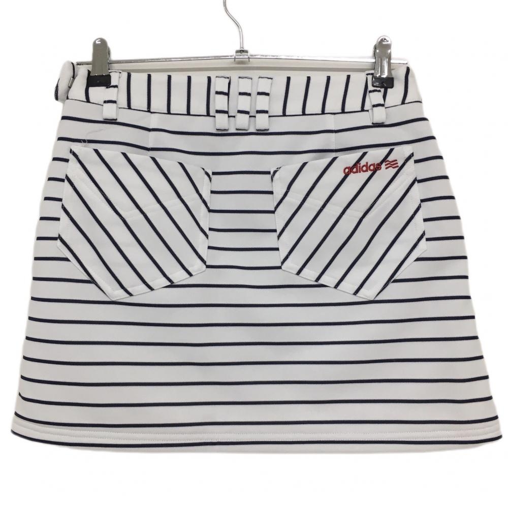 【美品】アディダス スカート 白×ネイビー ボーダー ストライプ 蓄熱裏地 レディース S/P ゴルフウェア adidas