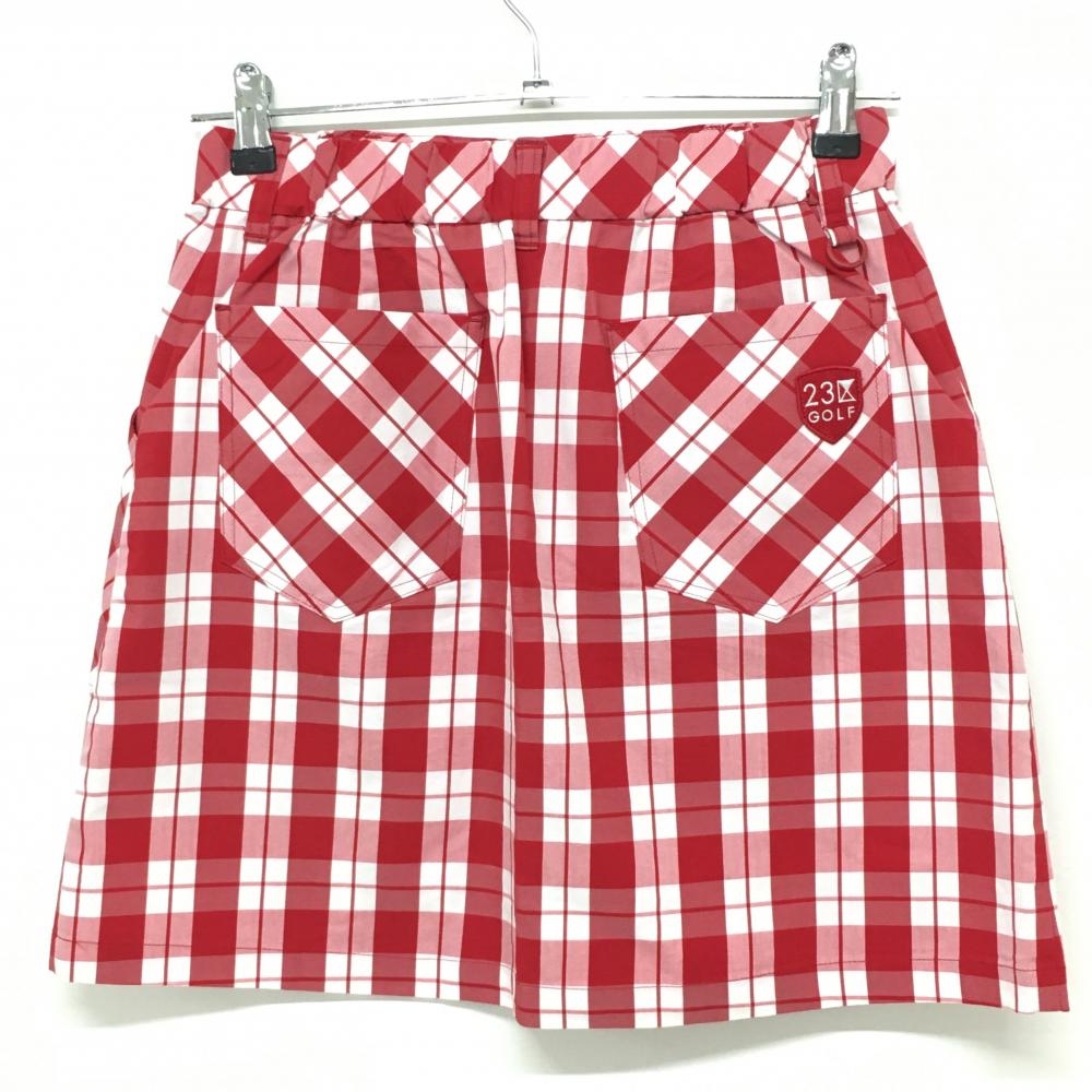 【超美品】23区ゴルフ スカート レッド×白 チェック柄 ストレッチ コットン混 レディース Ⅰ(M) ゴルフウェア 23区