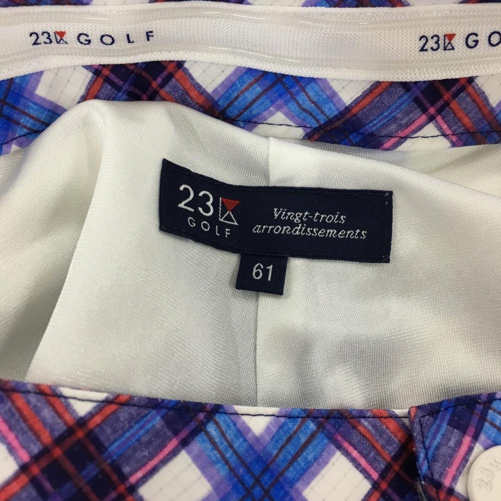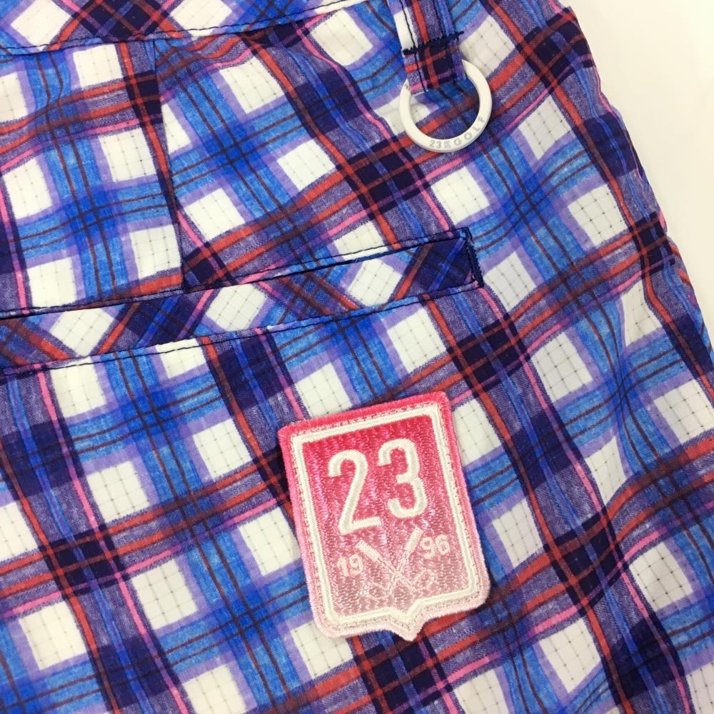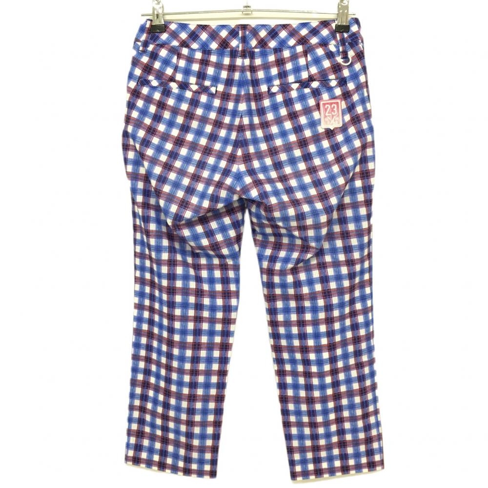 【超美品】23区ゴルフ 半端丈パンツ ブルー×レッド チェック柄 裏地付き 薄手 レディース 61(S) ゴルフウェア 23区