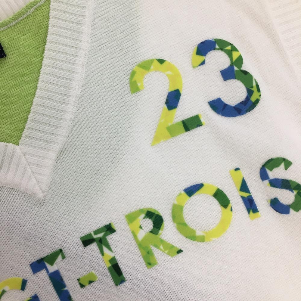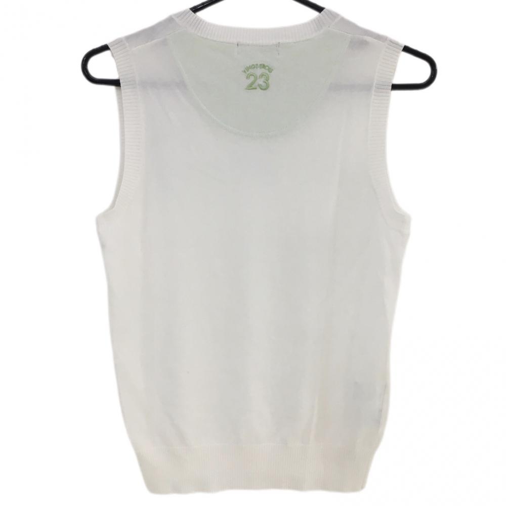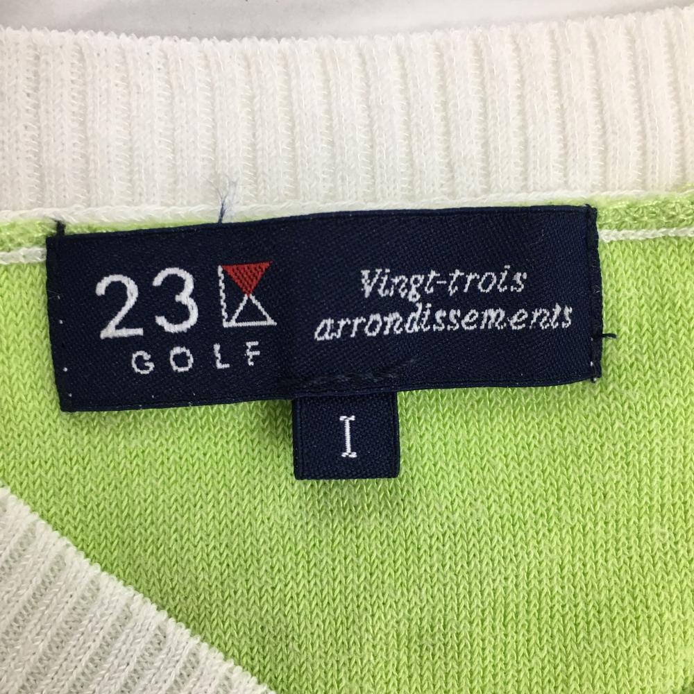 23区ゴルフ ニットベスト 白×ライトグリーン コットン混 レディース I(M) ゴルフウェア 23区
