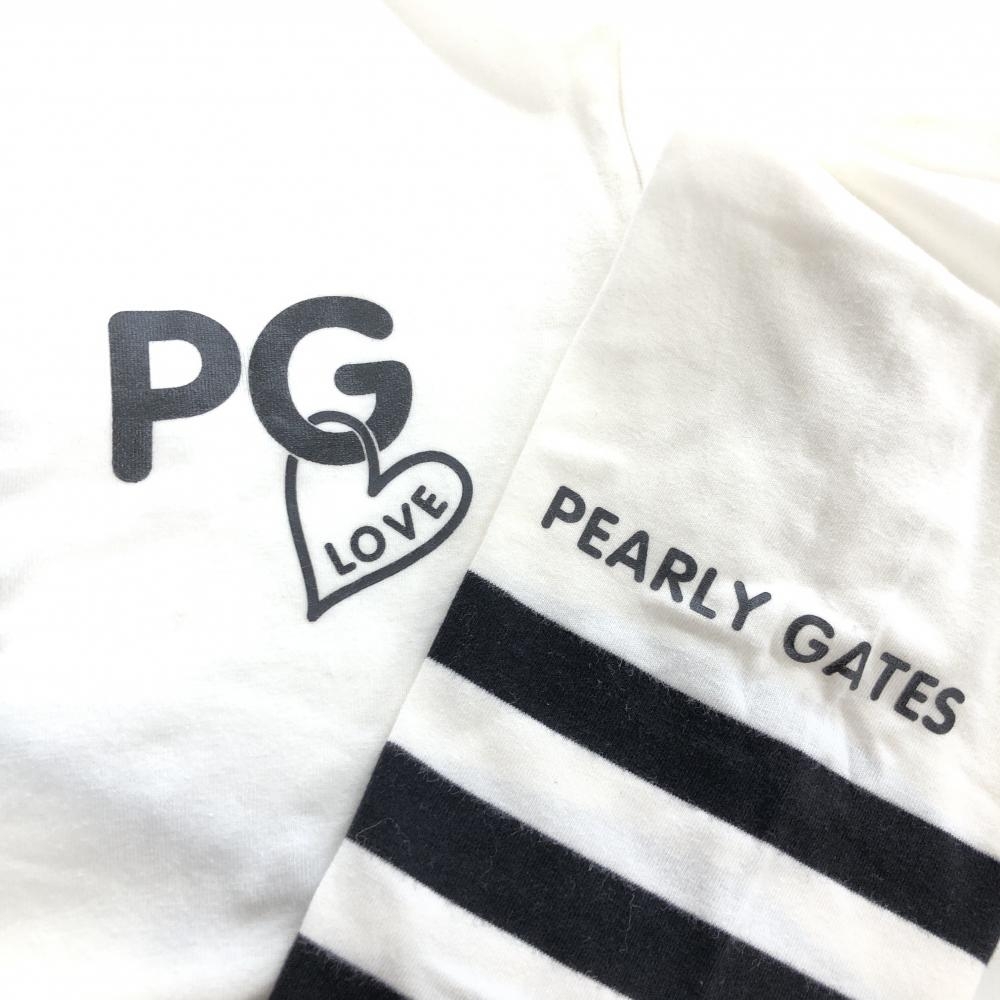 パーリーゲイツ 長袖ハイネックシャツ 白×黒 一部ボーダー 七分袖 バックロゴ レディース 0(S) ゴルフウェア PEARLY GATES