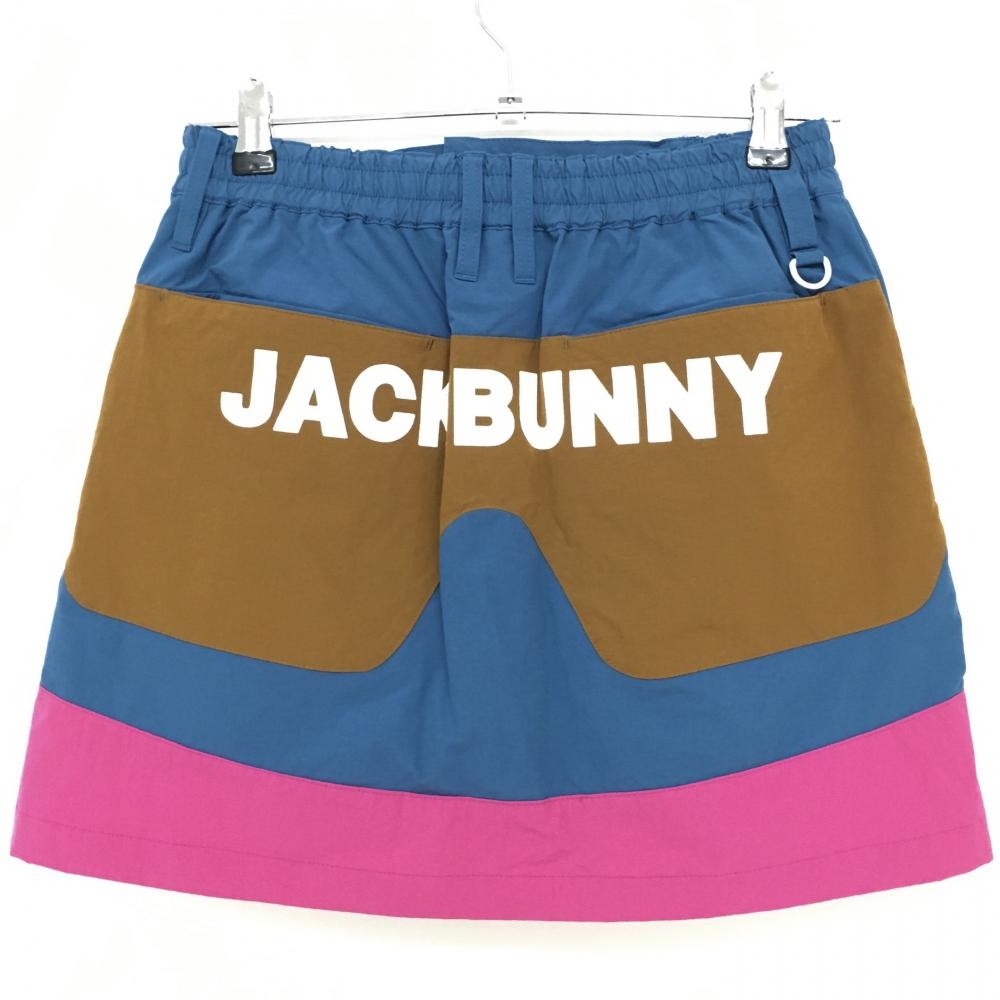 【超美品】ジャックバニー ナイロンスカート グリーン×ブラウン バックロゴ 内側インナーパンツ レディース 1(M) ゴルフウェア Jack Bunny