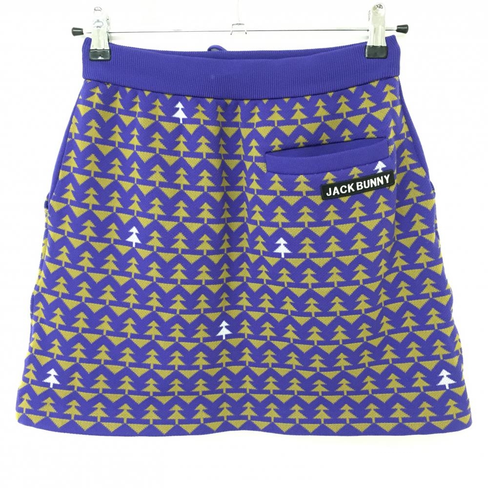 【超美品】ジャックバニー ニットスカート パープル×ブラウン ツリー柄 レディース 0(S) ゴルフウェア 2022年モデル Jack Bunny
