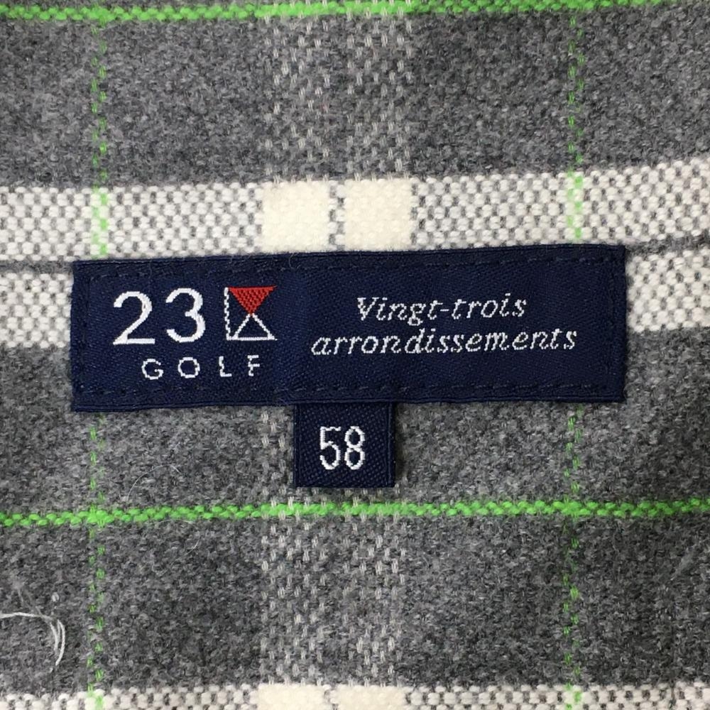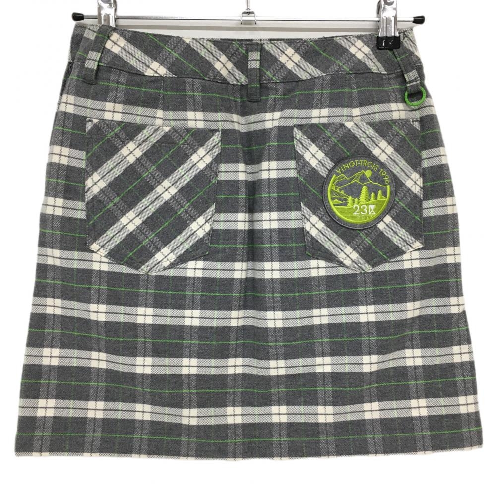 【超美品】23区ゴルフ スカート グレー×ライトグリーン チェック柄 コットン混 6ポケット レディース 58(XS) ゴルフウェア 23区