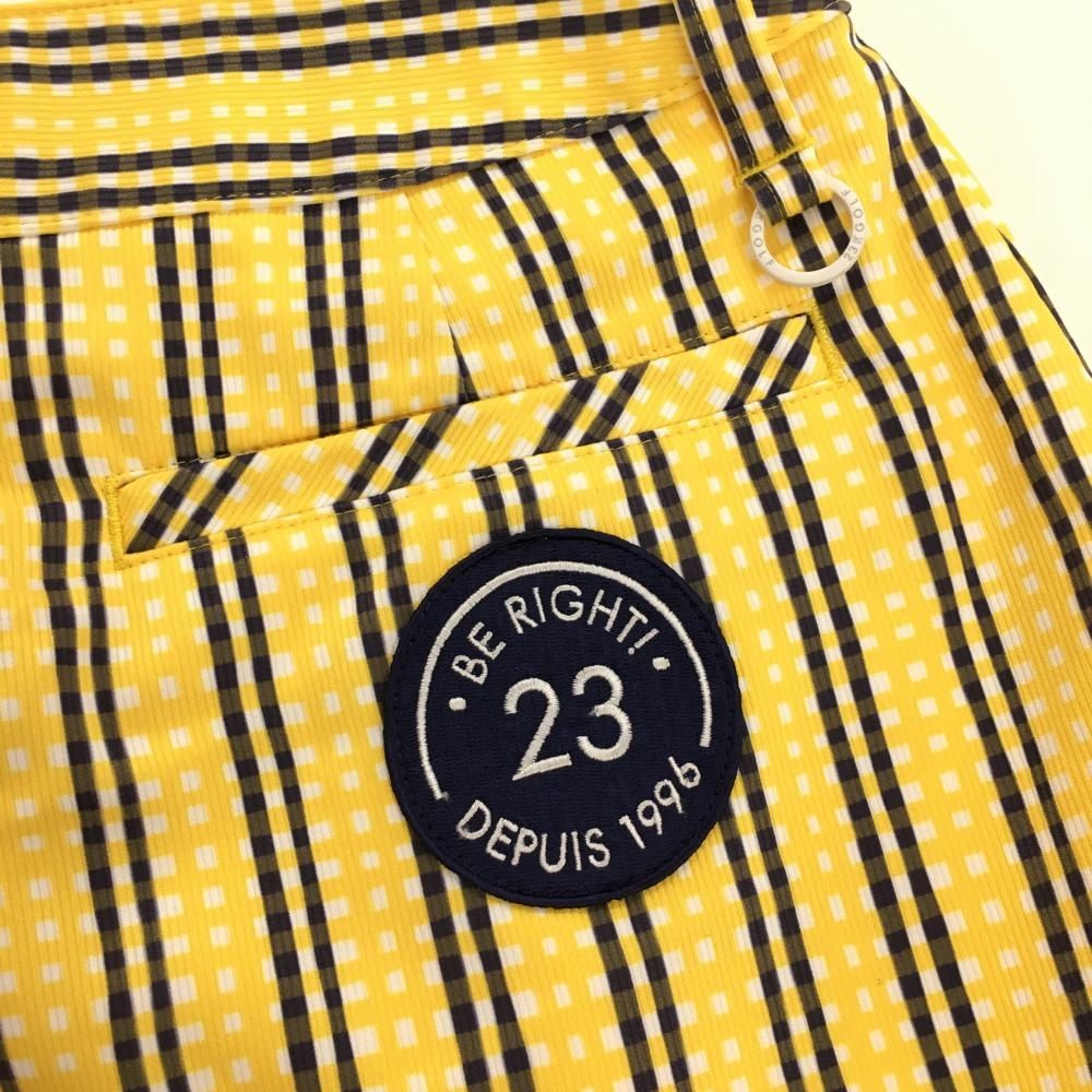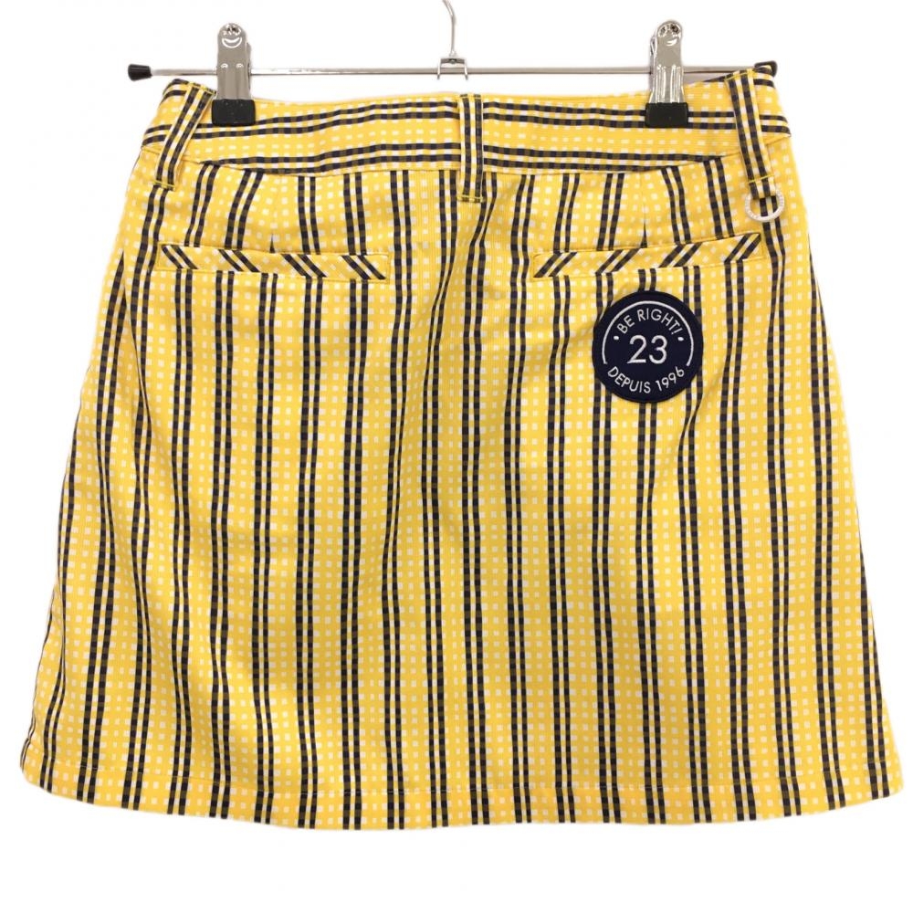 【超美品】23区ゴルフ スカート イエロー×ネイビー チェック柄 スナップボタン シャツストッパー付き レディース 61(S) ゴルフウェア 23区
