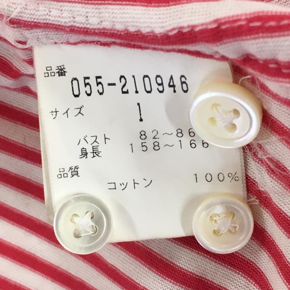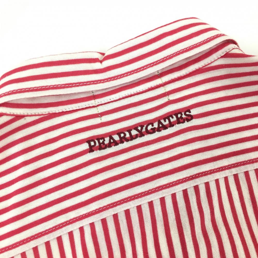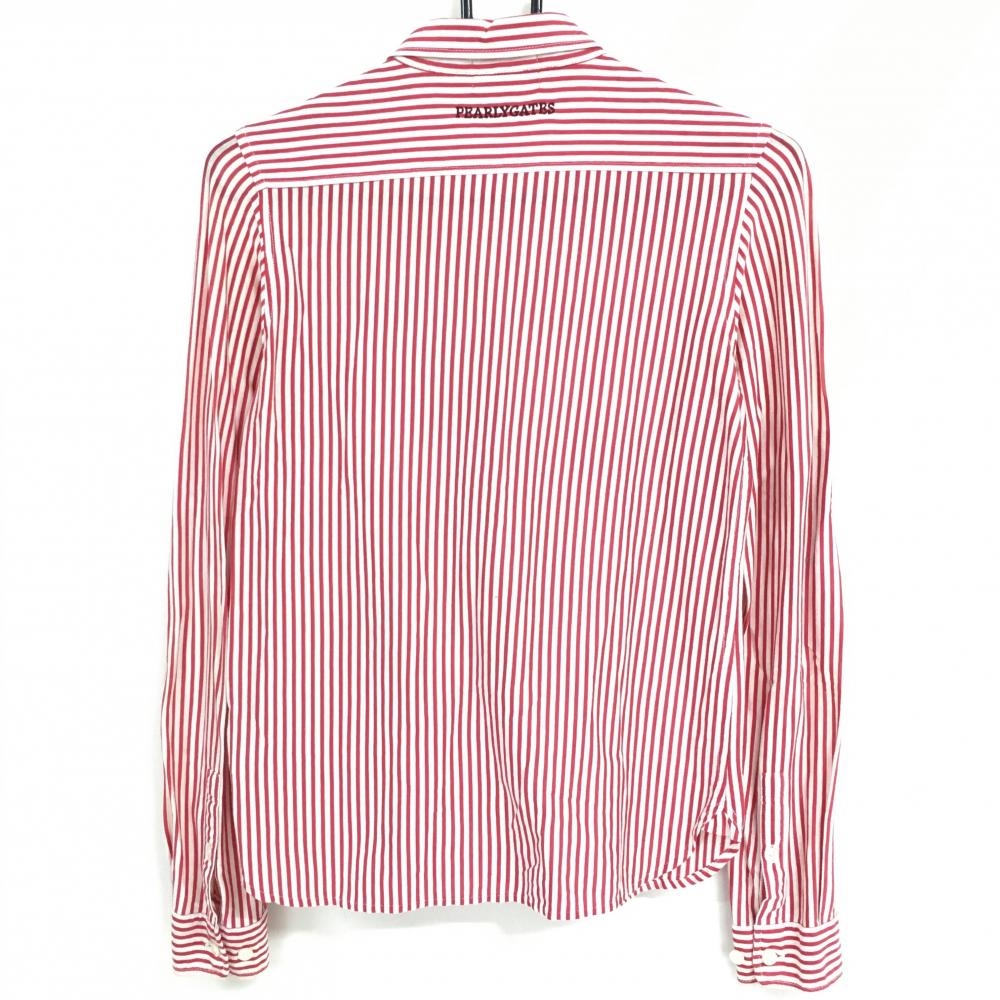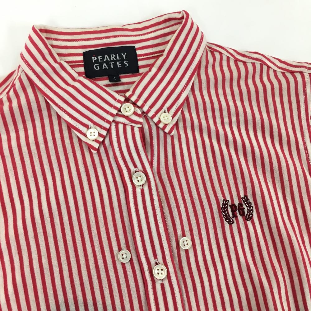 パーリーゲイツ 長袖シャツ レッド×白 ストライプ ボタンダウン レディース 1(M) ゴルフウェア PEARLY GATES