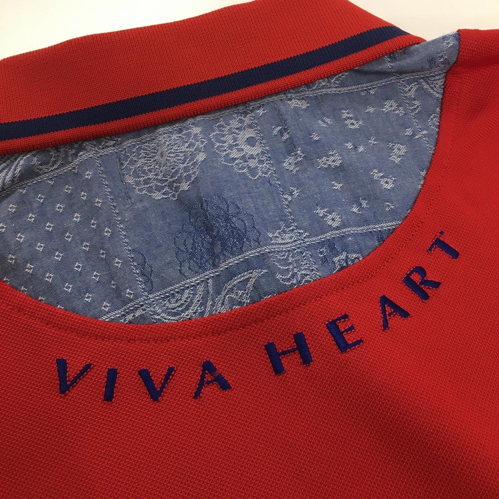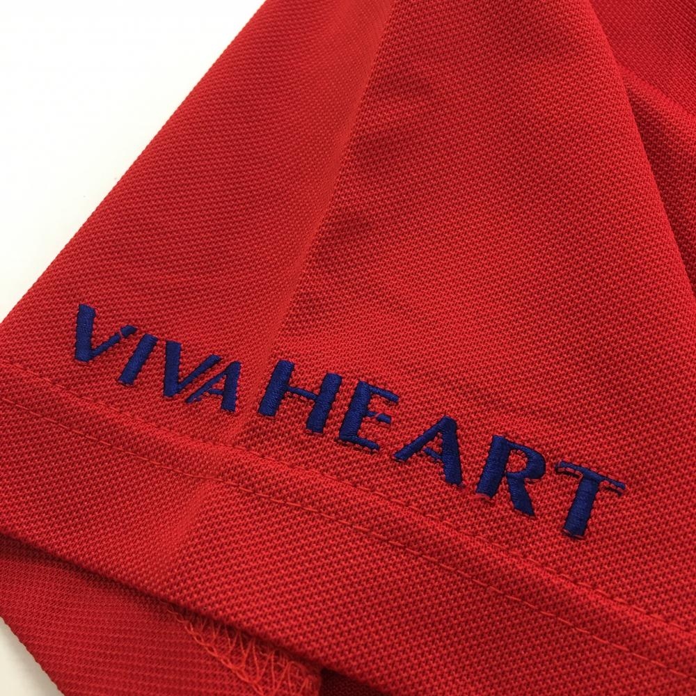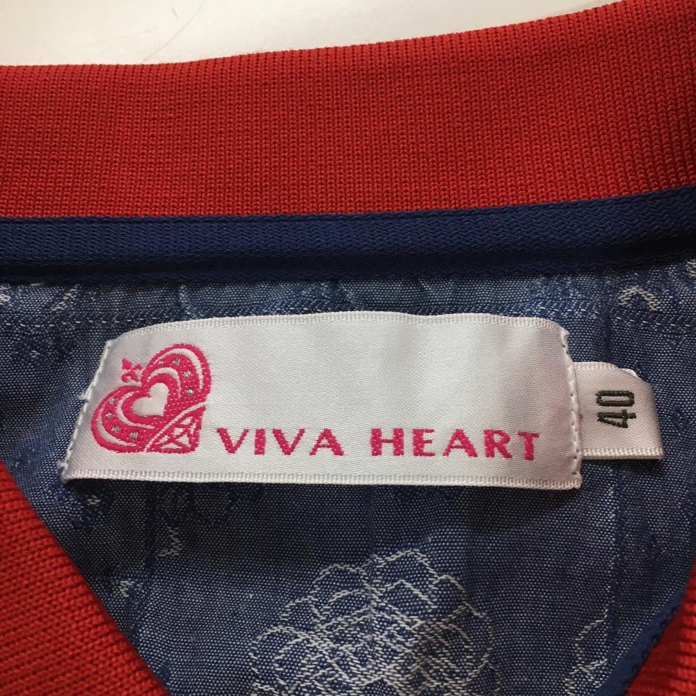【超美品】ビバハート 半袖ポロワンピース レッド×ネイビー ウエストゴム 異素材 レディース 40 ゴルフウェア VIVA HEART