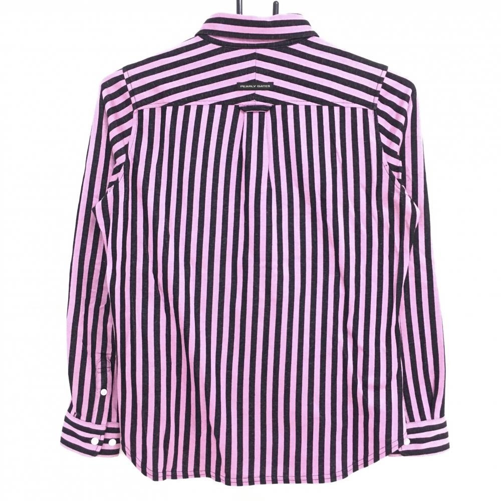 パーリーゲイツ 長袖シャツ ピンク×黒 ストライプ ボタンダウン レディース 0(S) ゴルフウェア PEARLY GATES