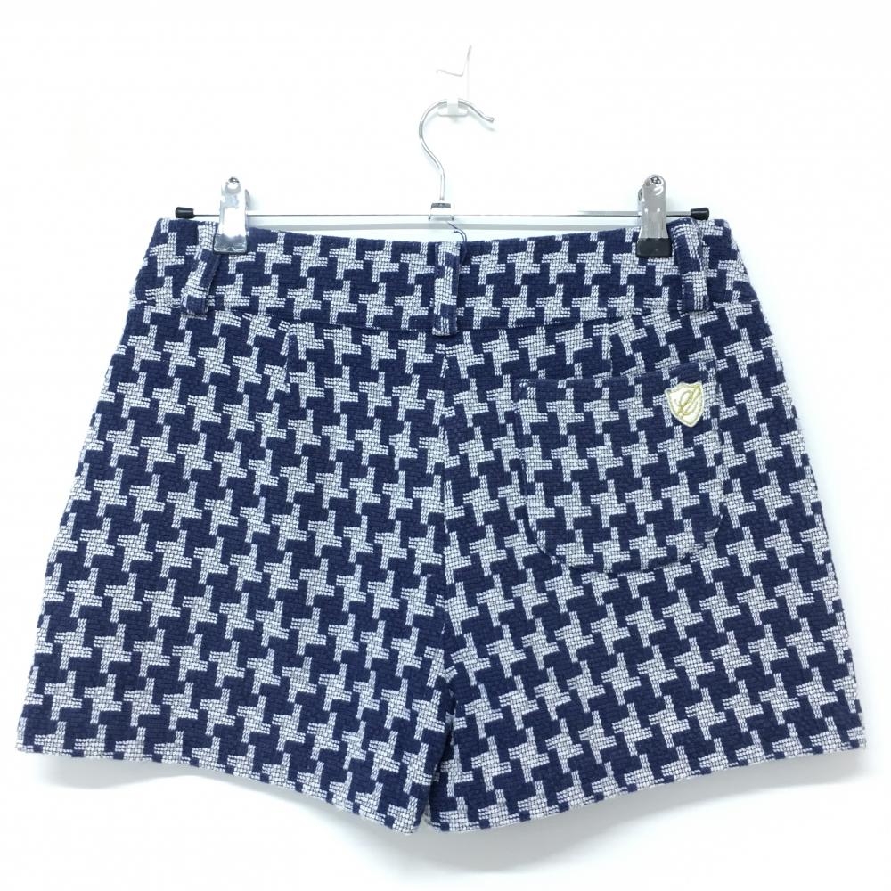 【美品】エフィカス キュロットスカート ネイビー×白 千鳥柄 ツイード調 レディース 2(M) ゴルフウェア efficace