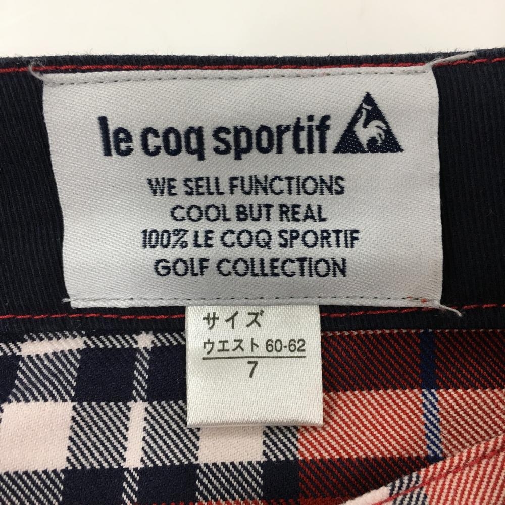 【超美品】ルコック パンツ レッド×ネイビー チェック レディース 7 ゴルフウェア le coq sportif