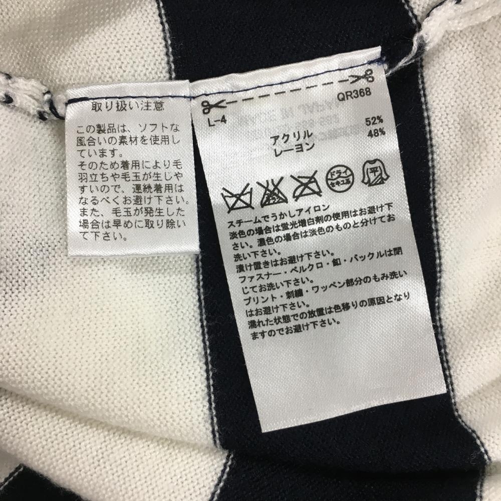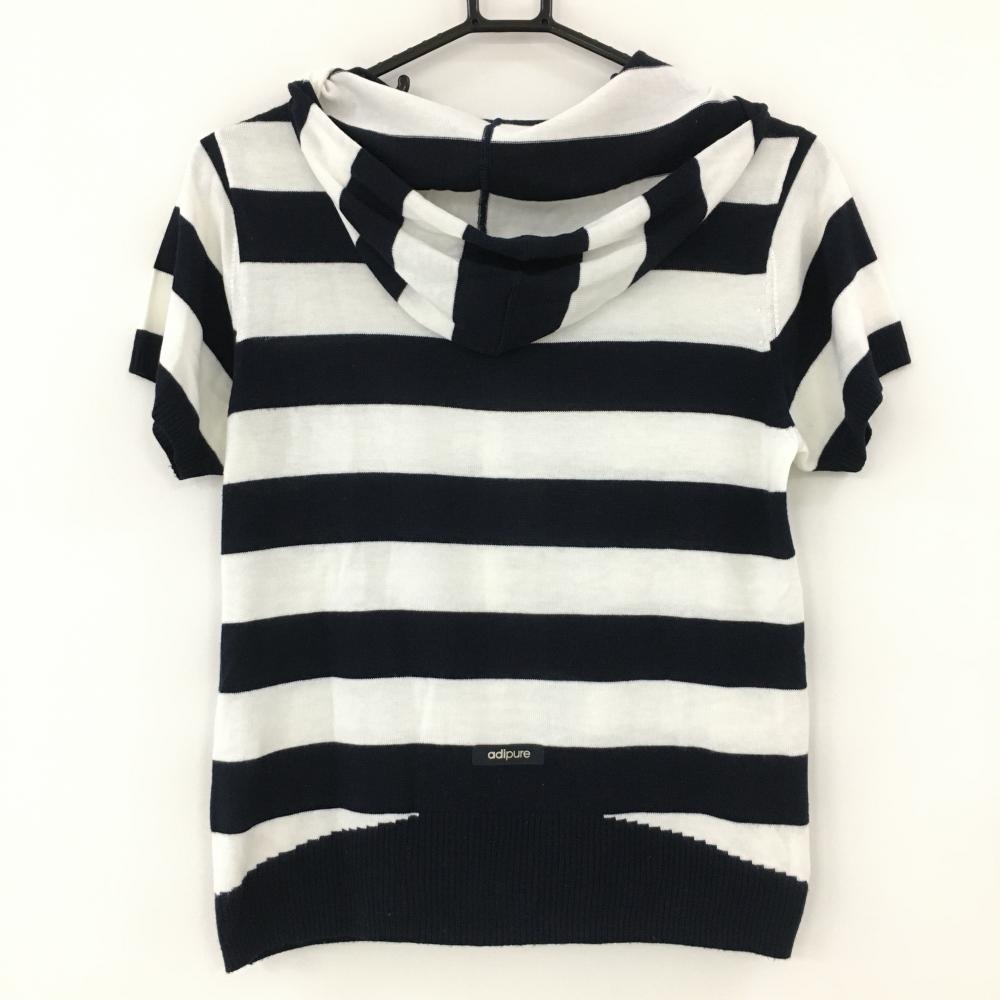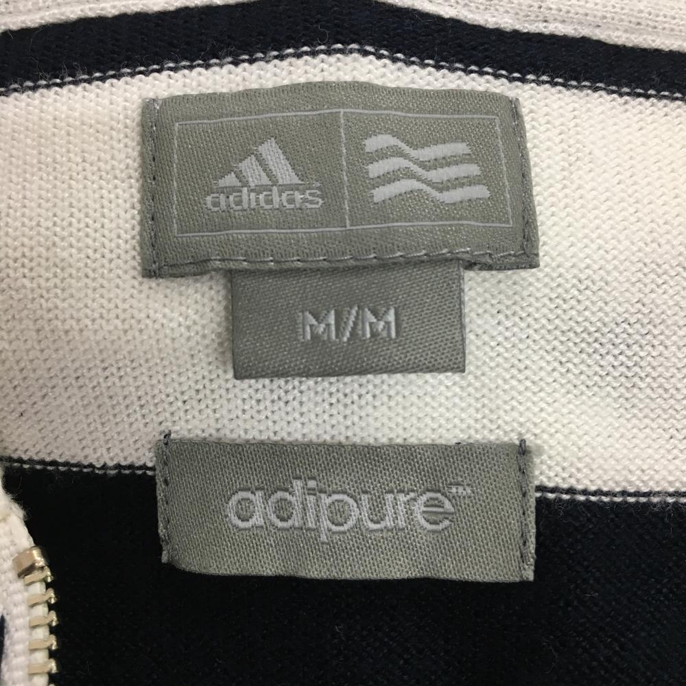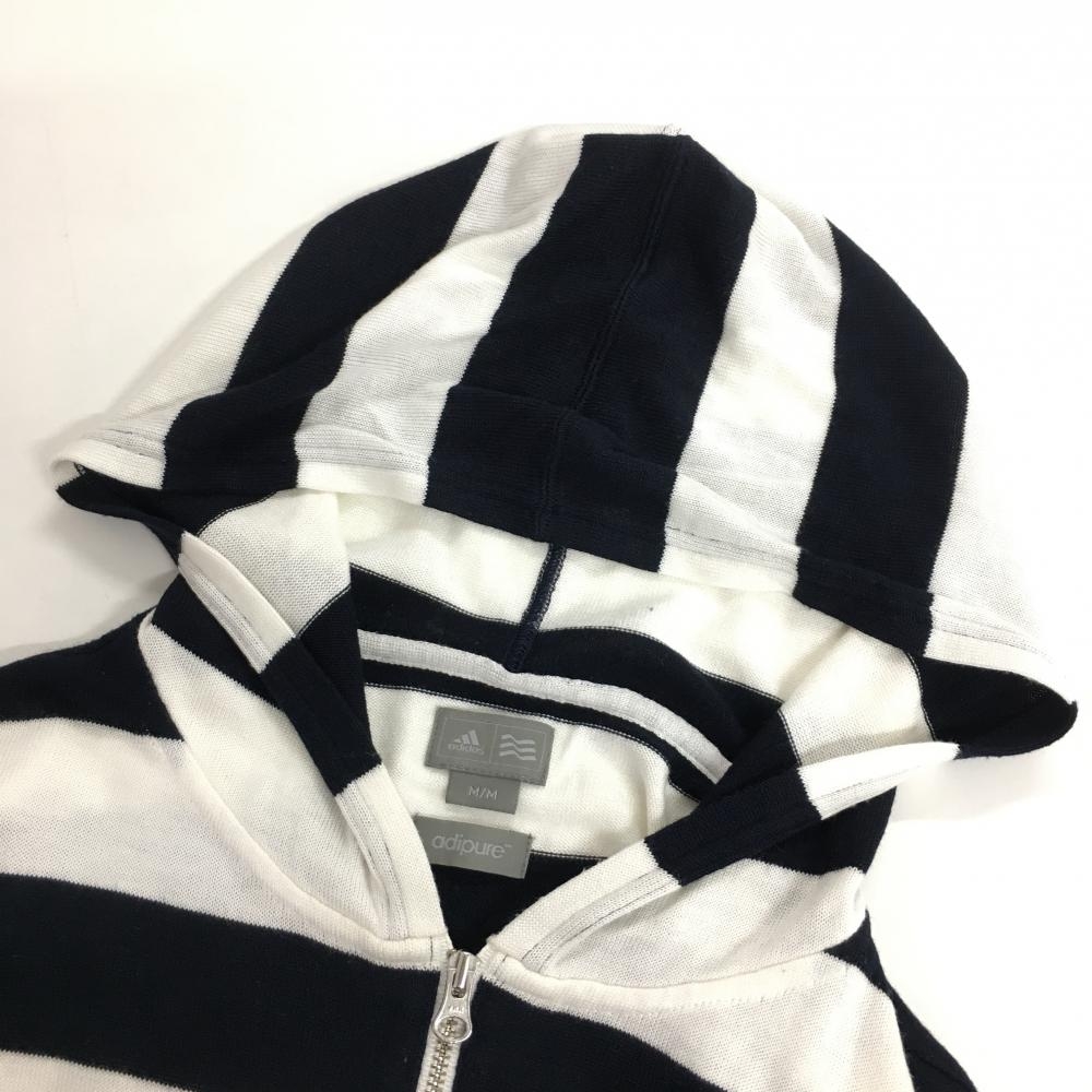 【超美品】アディダス 半袖ニットパーカー 白×ダークネイビー 太ボーダー アクリル混 adipure レディース M/M ゴルフウェア adidas