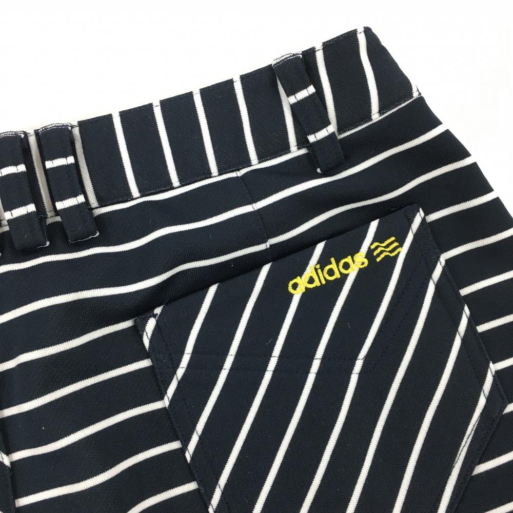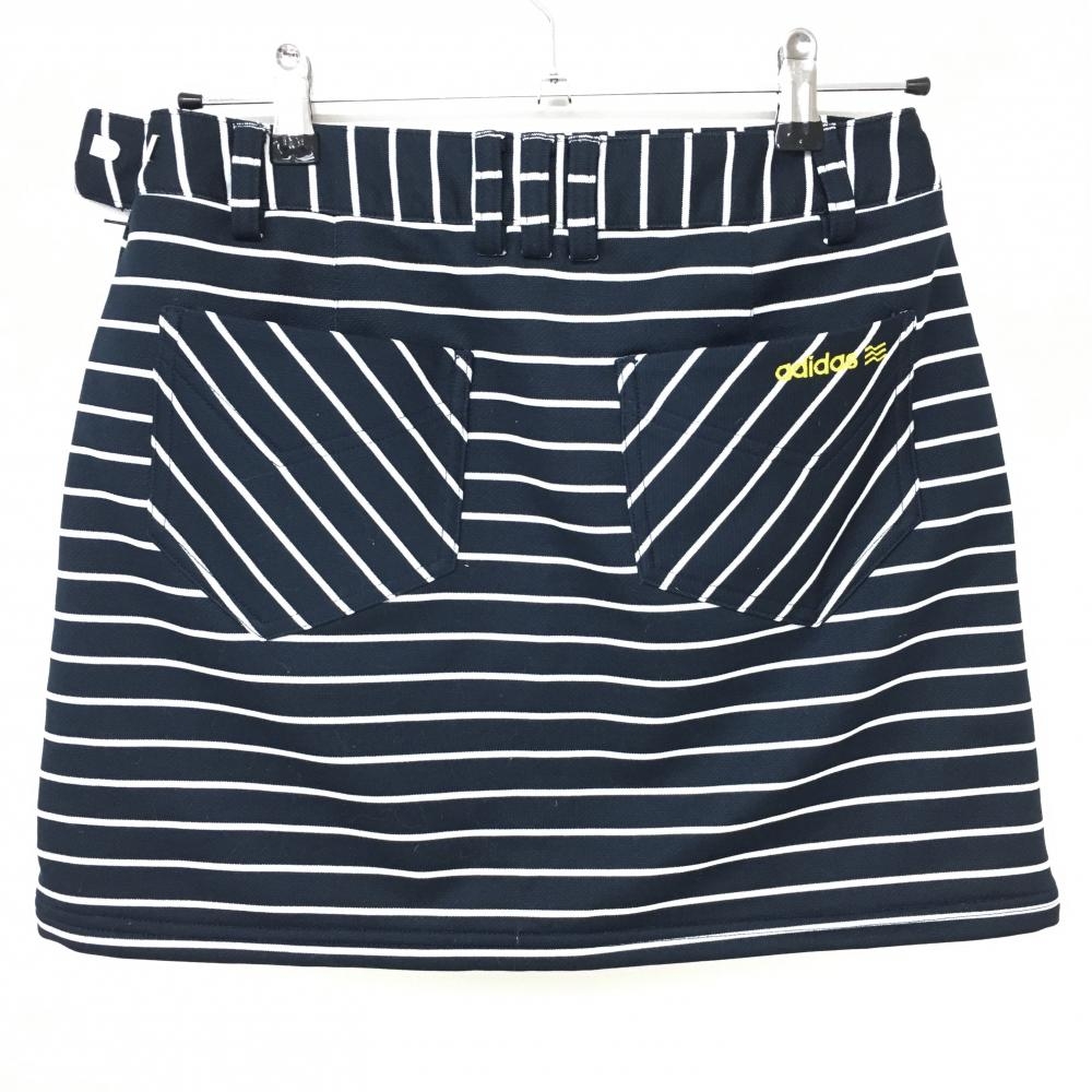 【美品】アディダス スカート ダークネイビー×白 ボーダー 蓄熱裏地 ウエストストライプ レディース M/M ゴルフウェア adidas