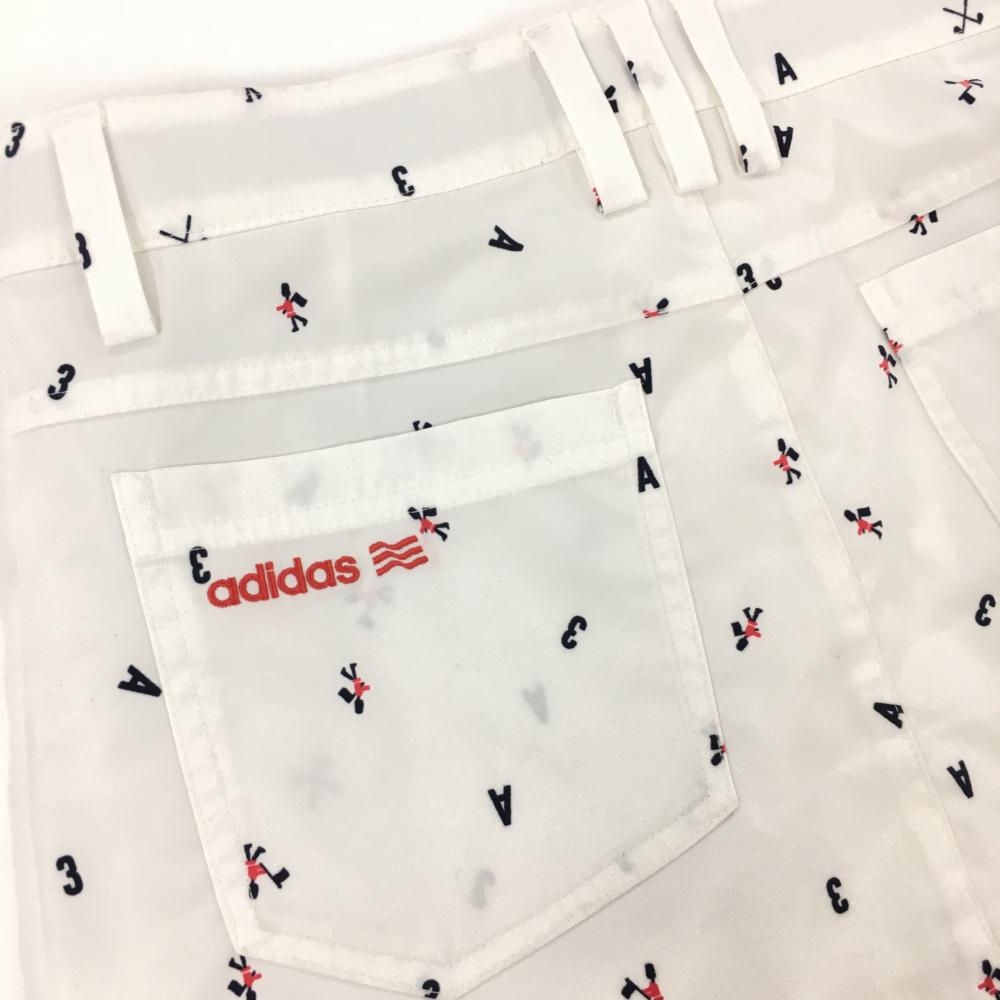【美品】アディダス スカート 白×ダークネイビー 英字柄 数字 裏地付 レディース M/M ゴルフウェア adidas