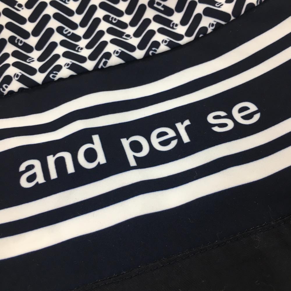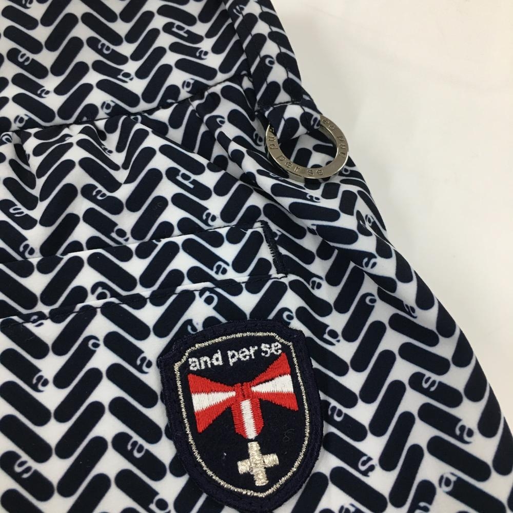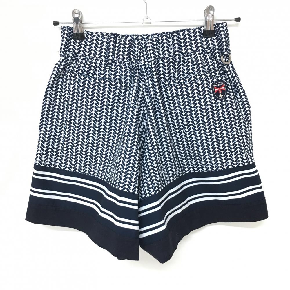【美品】アンパスィ キュロットスカート 白×ネイビー 総柄 レディース S ゴルフウェア and per se